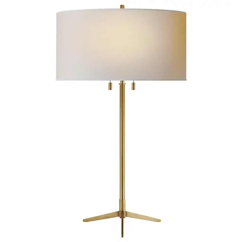 The Caron Table Lamp by Visual Comfort Signature, formerly known as Visual Comfort, features simple, yet elegant lines and design-minded style. A Natural Paper drum shade brilliantly distributes ambient and direct light throughout the surrounding space. Two independent pull-chain switches allow for user control of each lamp that rests above. A 10-inch tripod base offers stability and finishes out the fixture. Designed by Thomas O’Brien.