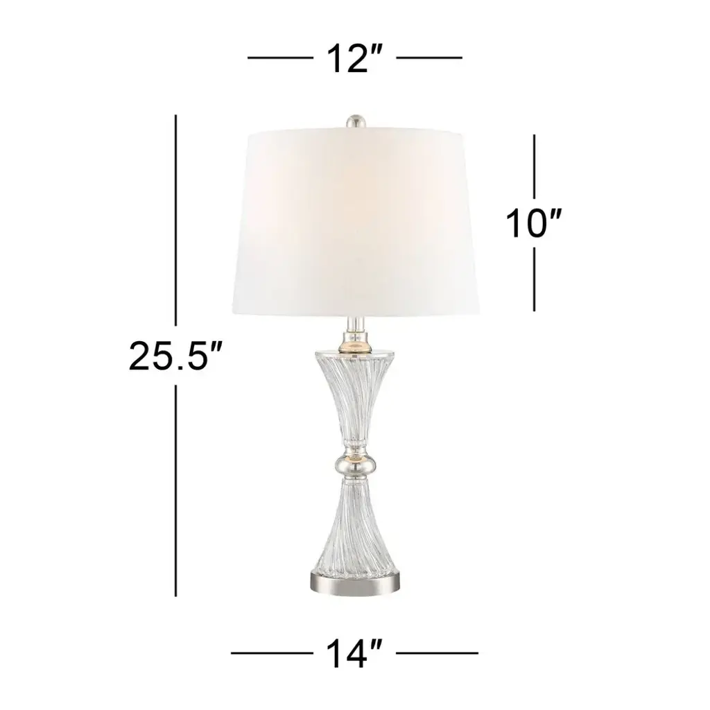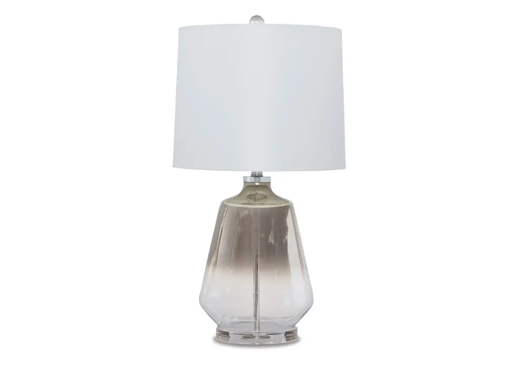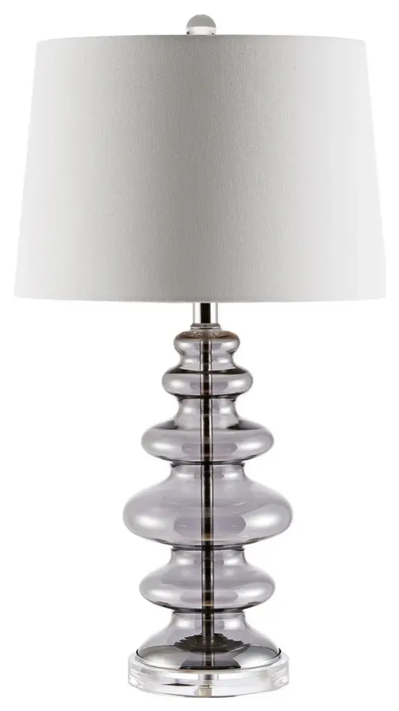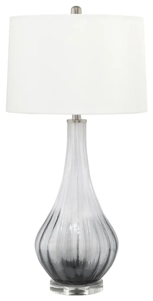 Durable Glass ConstructionSmoked glass finish150w three way switchDurable hardback linen shade includedWeighted base for added stabilityShips in one carton