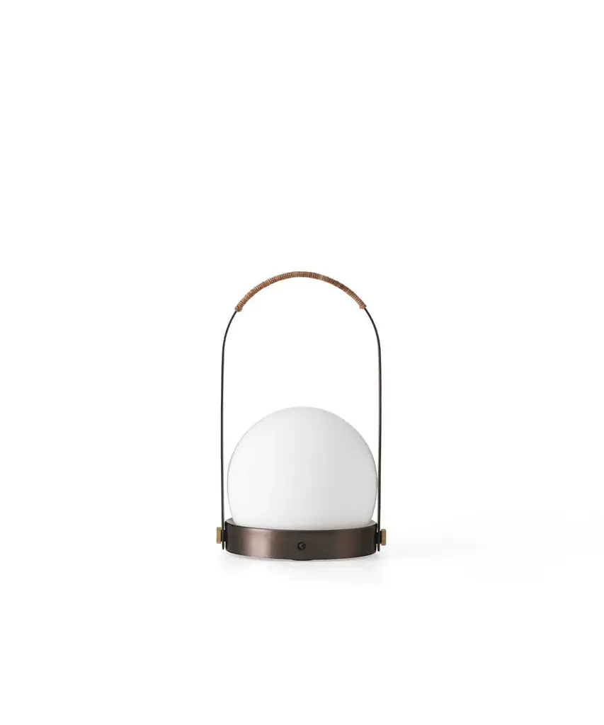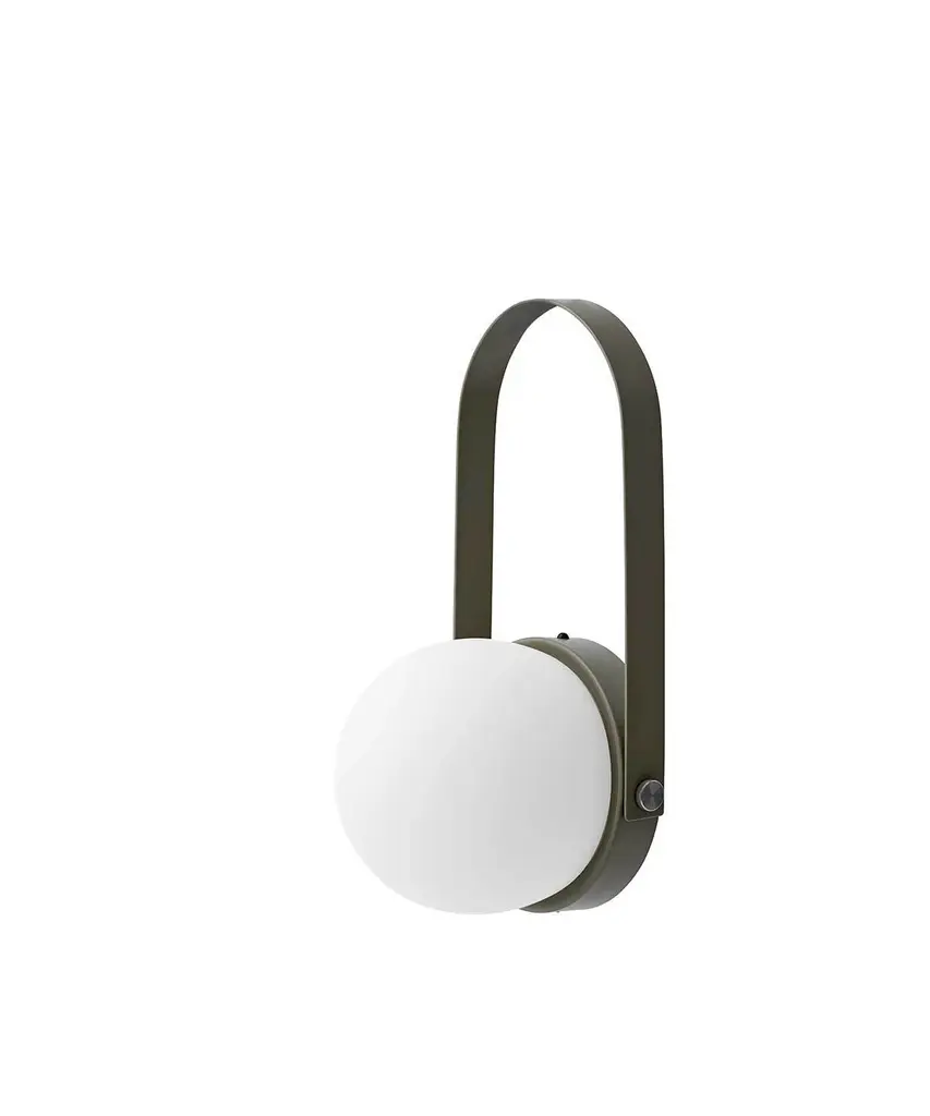 A portable LED lamp, suitable for both the indoors and out. The Carrie LED Lamp was designed to honor "hygge" the Danish idea of creating a warm, and cozy atmosphere. Lightweight and portable with a USB charger, the lamp can be used as a bedside lamp, on an office desk or as an alternative to candles on the dining table. Because it can be charged, it is also great for outdoor summer dining. Available in Black, White, Burned Red, Olive, and Brushed Brass. Designed by Norm Architects and produced by Copenhagen based studio Audo Copenhagen.