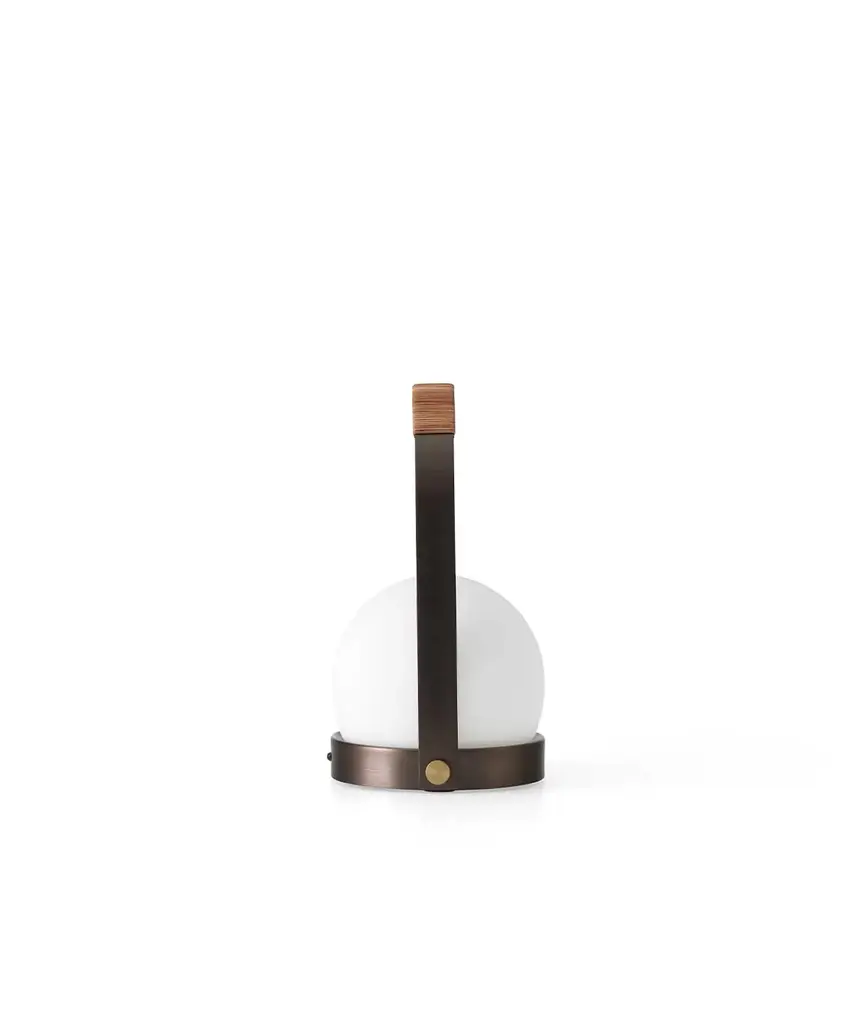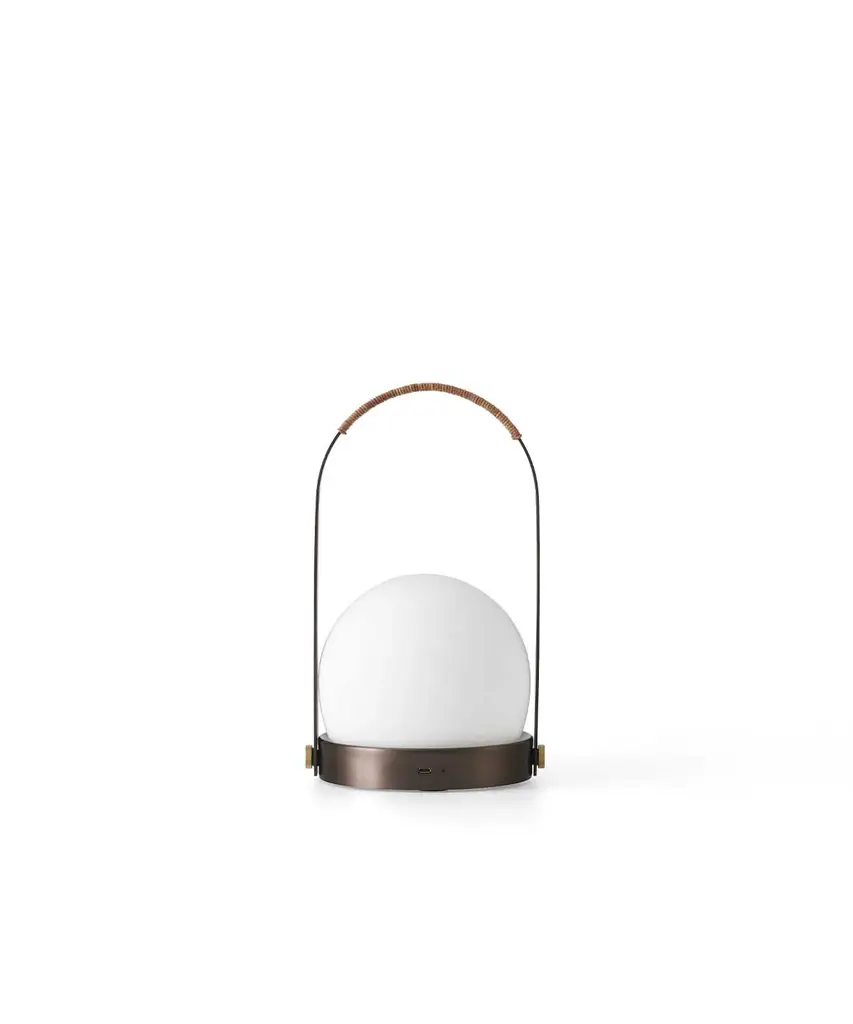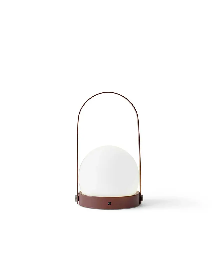 A portable LED lamp, suitable for both the indoors and out. The Carrie LED Lamp was designed to honor "hygge" the Danish idea of creating a warm, and cozy atmosphere. Lightweight and portable with a USB charger, the lamp can be used as a bedside lamp, on an office desk or as an alternative to candles on the dining table. Because it can be charged, it is also great for outdoor summer dining. Available in Black, White, Burned Red, Olive, and Brushed Brass. Designed by Norm Architects and produced by Copenhagen based studio Audo Copenhagen.