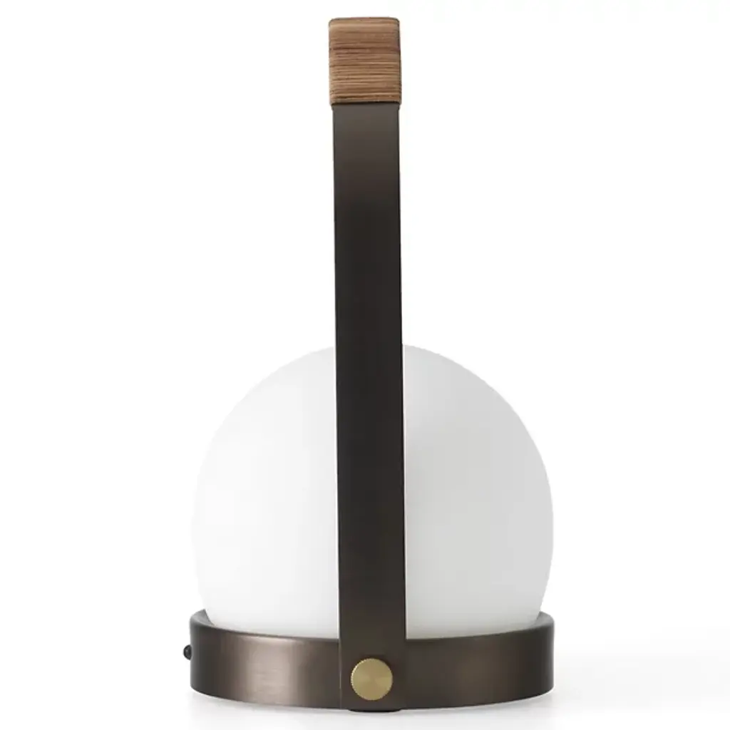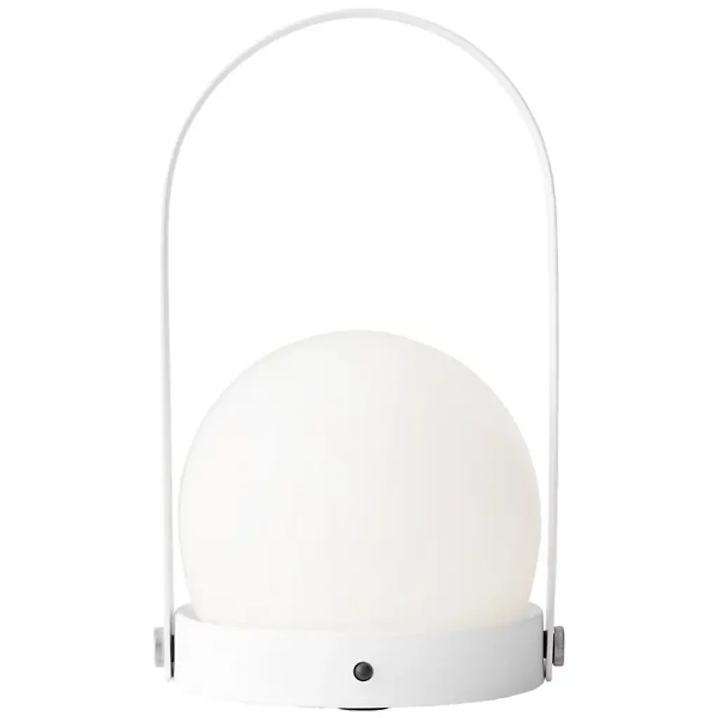 The Carrie Rechargeable LED Table Lamp from Audo Copenhagen, formerly known as Menu, is a fixture that delivers an aura of warm, pleasant comfort. Designed by Danish-based design studio Norm Architects, the fixture reflects the company's philosophy of creating a warm atmosphere through the means of a streamlined, minimalist Opal Glass Shade and powder-coated steel frame. It refines a minimalist hygge style warmth and charges using an included USB cable and adapter, while the handle makes it easily portable when more light is called for in any location.