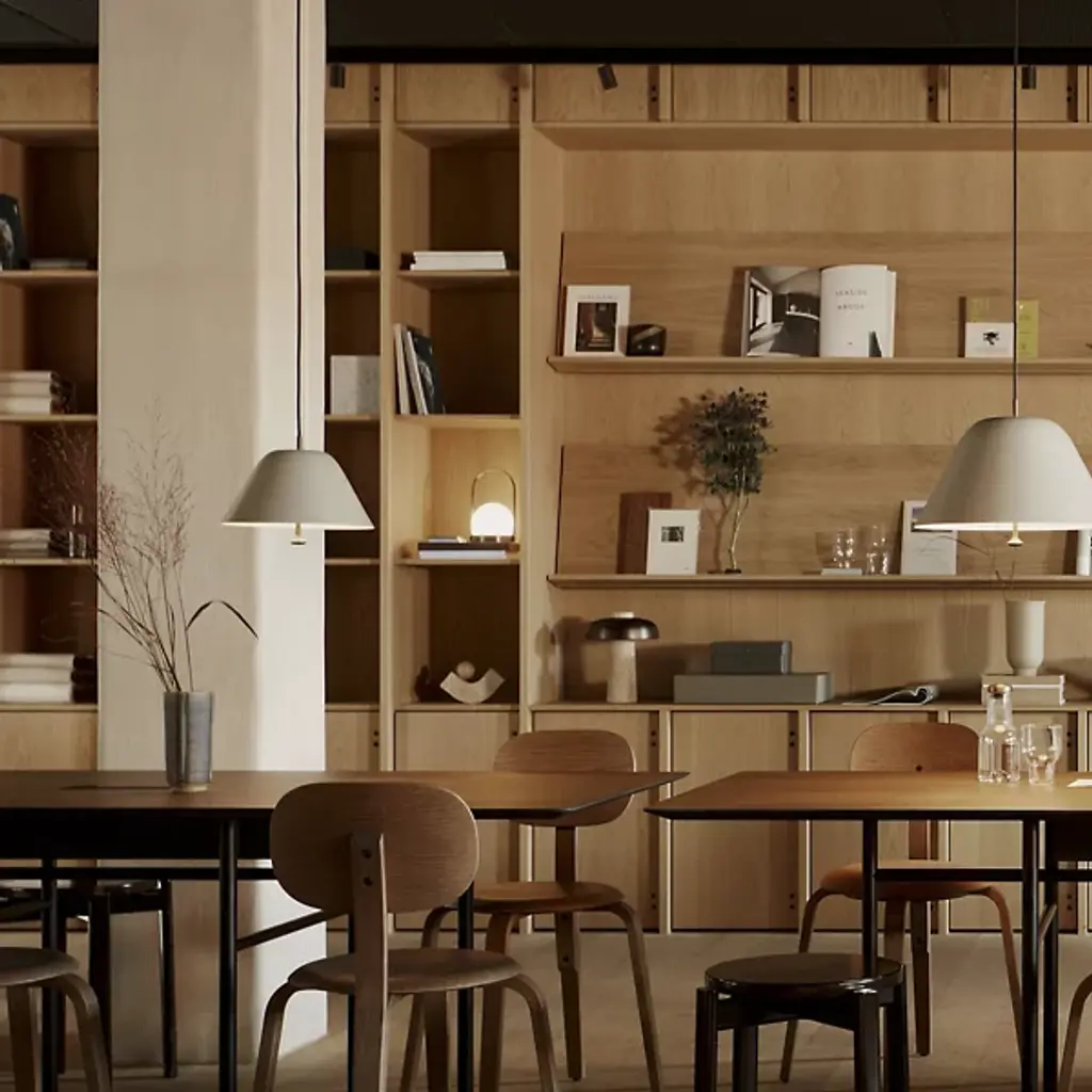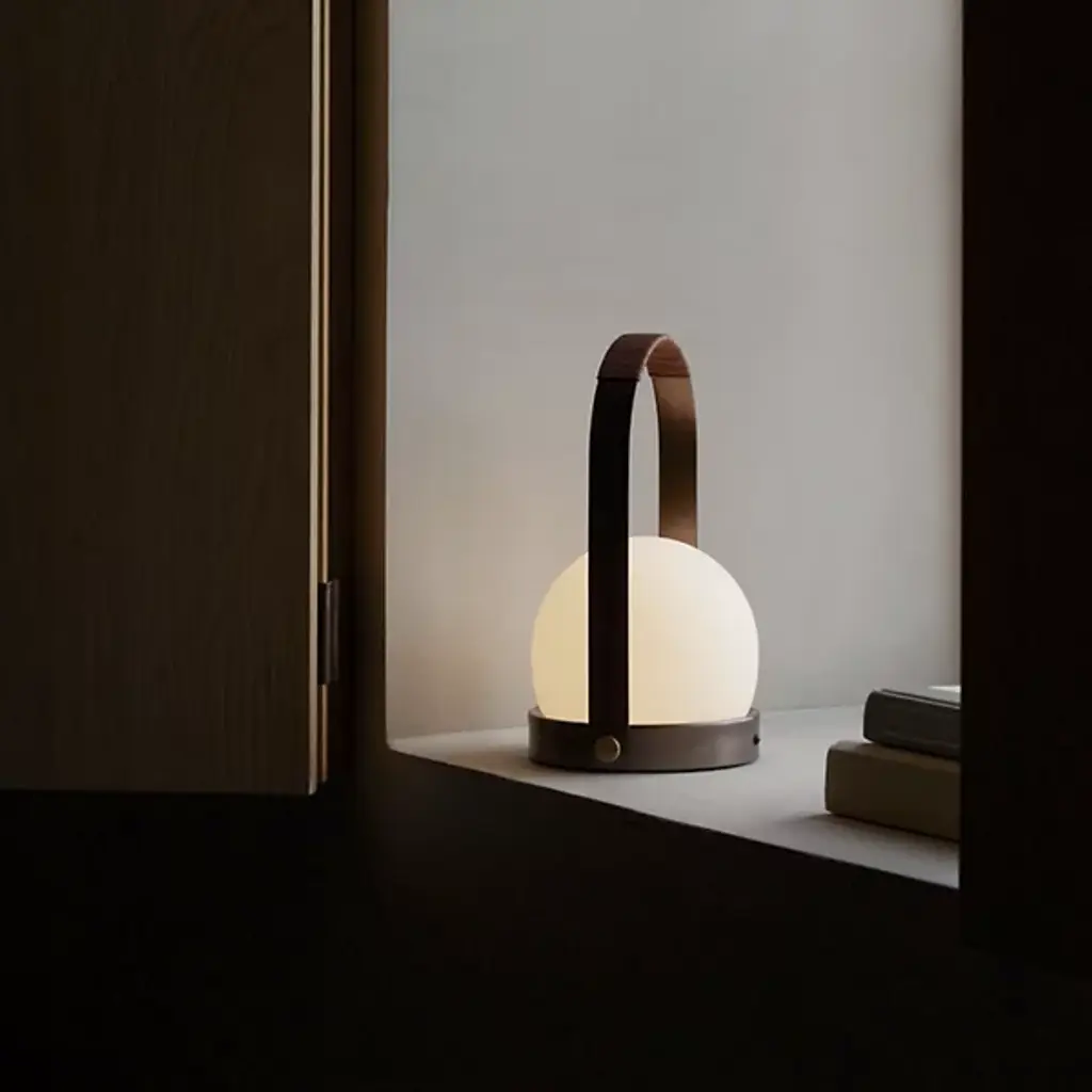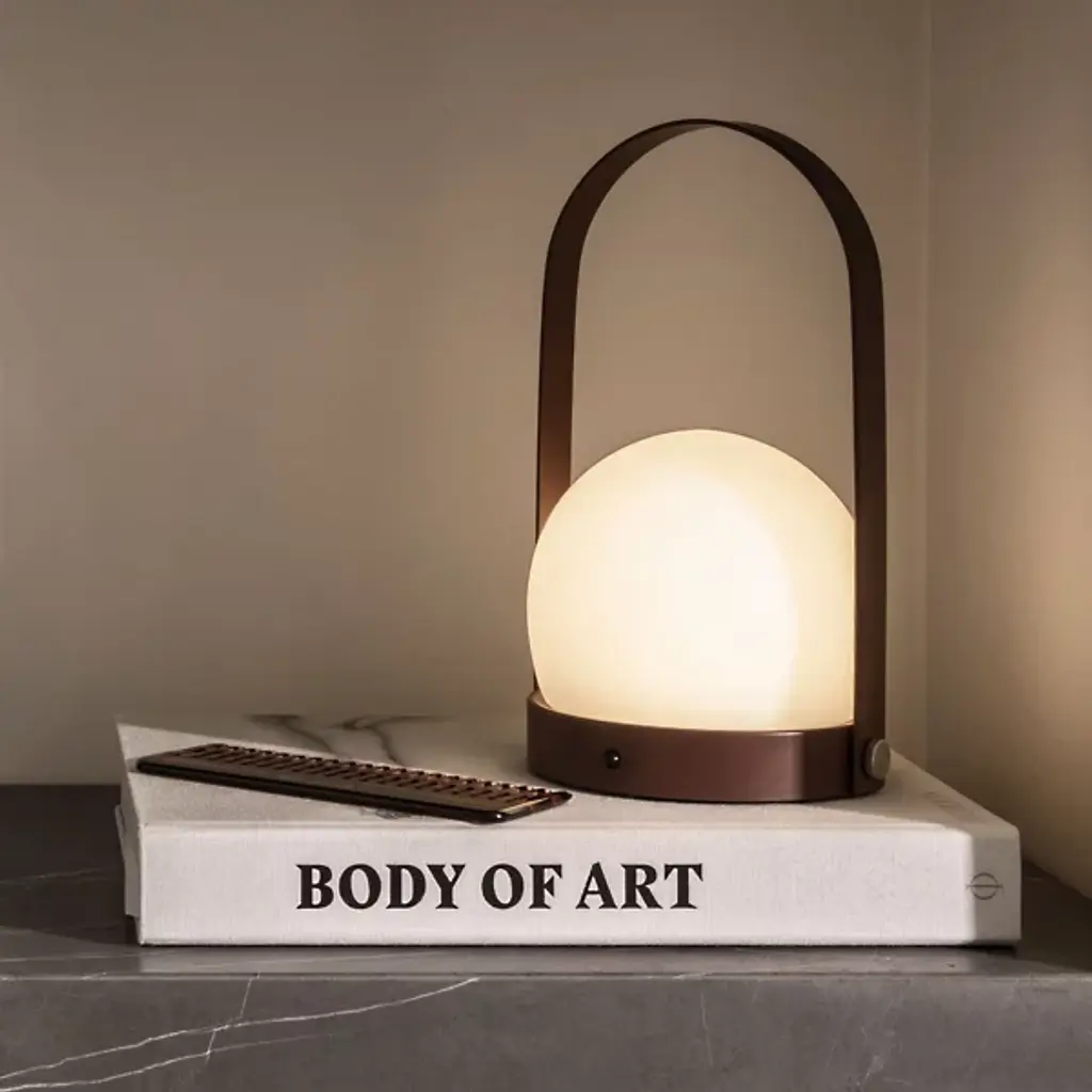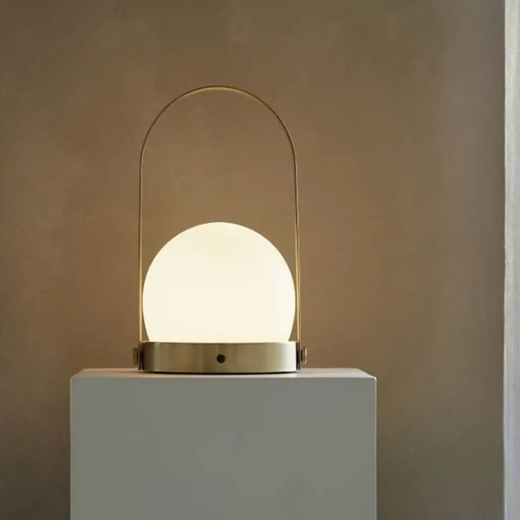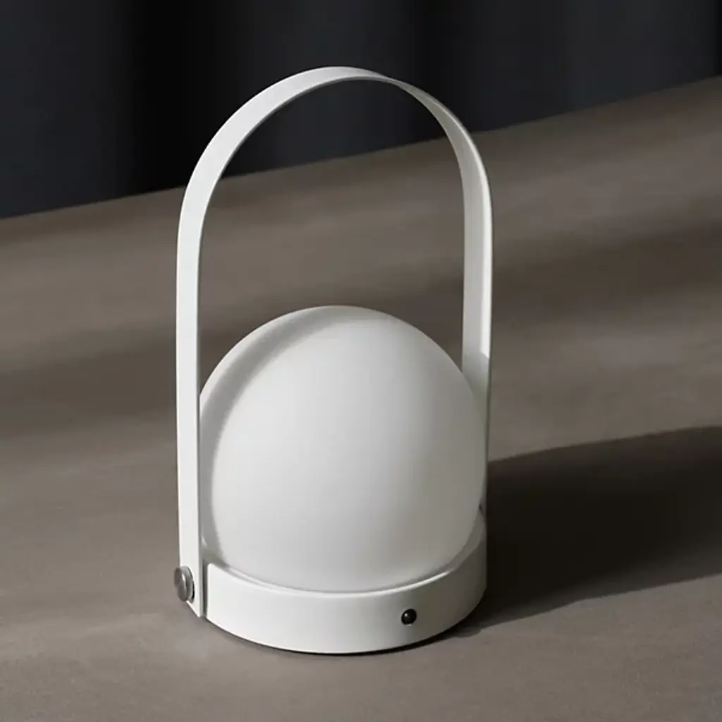 The Carrie Rechargeable LED Table Lamp from Audo Copenhagen, formerly known as Menu, is a fixture that delivers an aura of warm, pleasant comfort. Designed by Danish-based design studio Norm Architects, the fixture reflects the company's philosophy of creating a warm atmosphere through the means of a streamlined, minimalist Opal Glass Shade and powder-coated steel frame. It refines a minimalist hygge style warmth and charges using an included USB cable and adapter, while the handle makes it easily portable when more light is called for in any location.