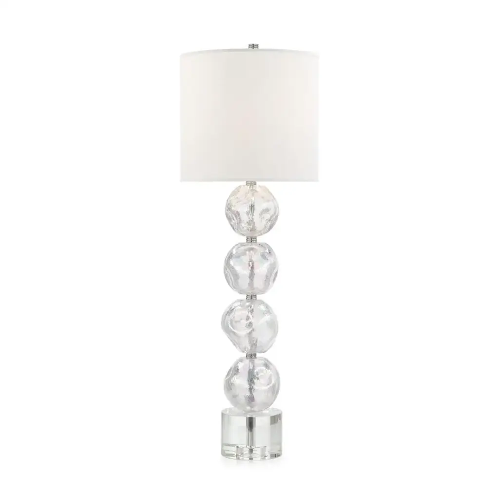 40"H Stunning strands of cascading crystals drape from this antique silver table lamp. Shade: 14" X 14" X 10.5", White, Cotton. 1 Way, 60 Watt Max, Type A Bulb, 8" Nickel Harp