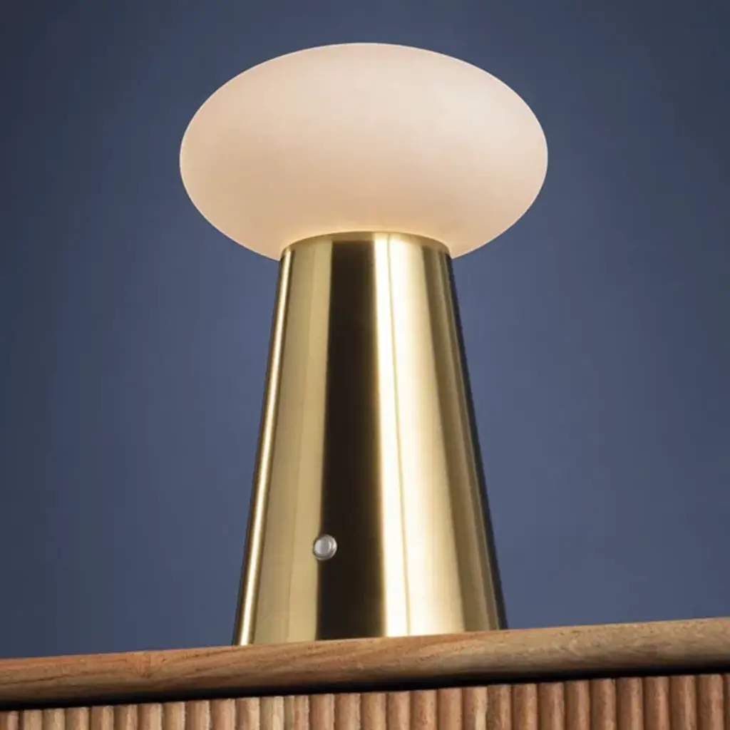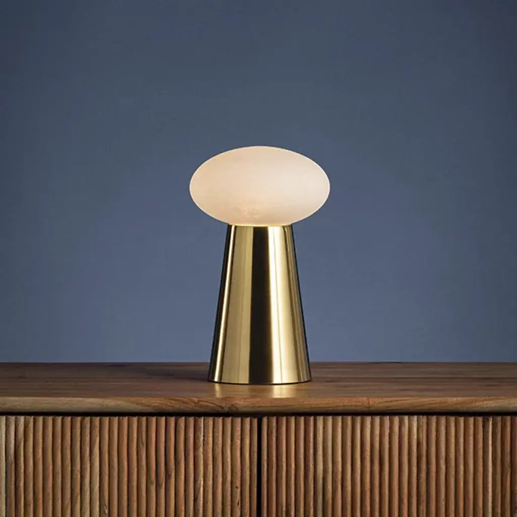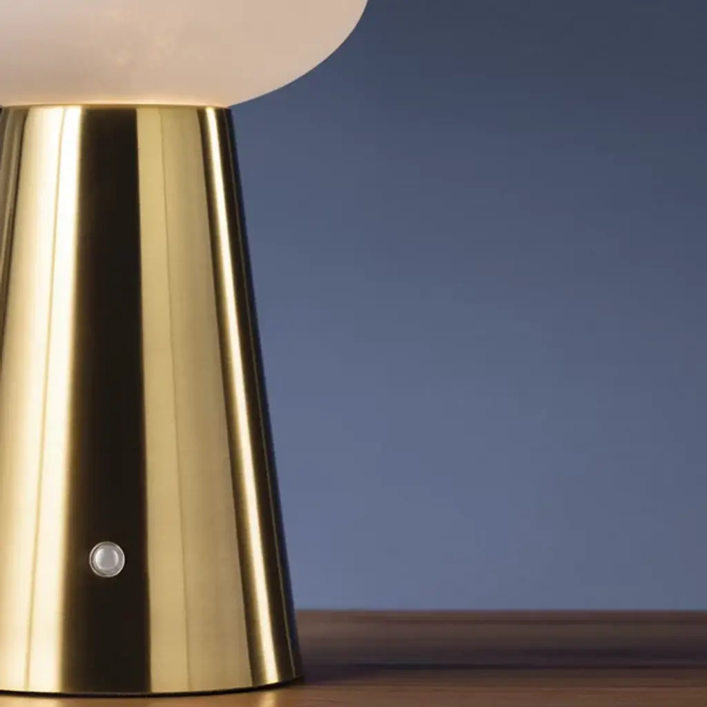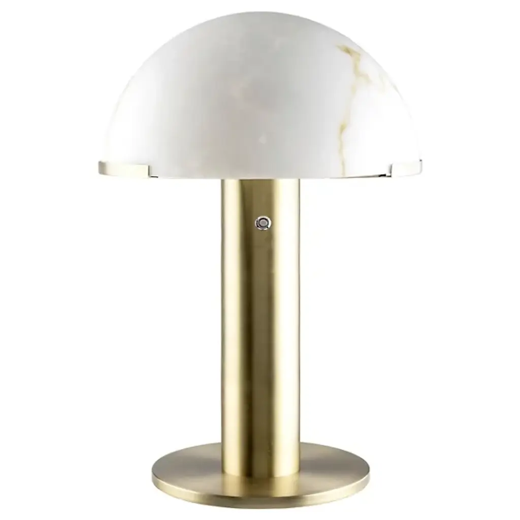 The Cashel Rechargeable LED Table Lamp from Hudson Valley Lighting stands just 10 inches tall and brings a cheerful touch to any space. Its soft cloud glass shade pairs beautifully with a conical metal base in warm Aged Brass, creating a playful yet polished look. Perfect for desks, nightstands, or cozy corners, it adds a modern glow and a bit of personality, proof that even the smallest pieces can make a big impression.