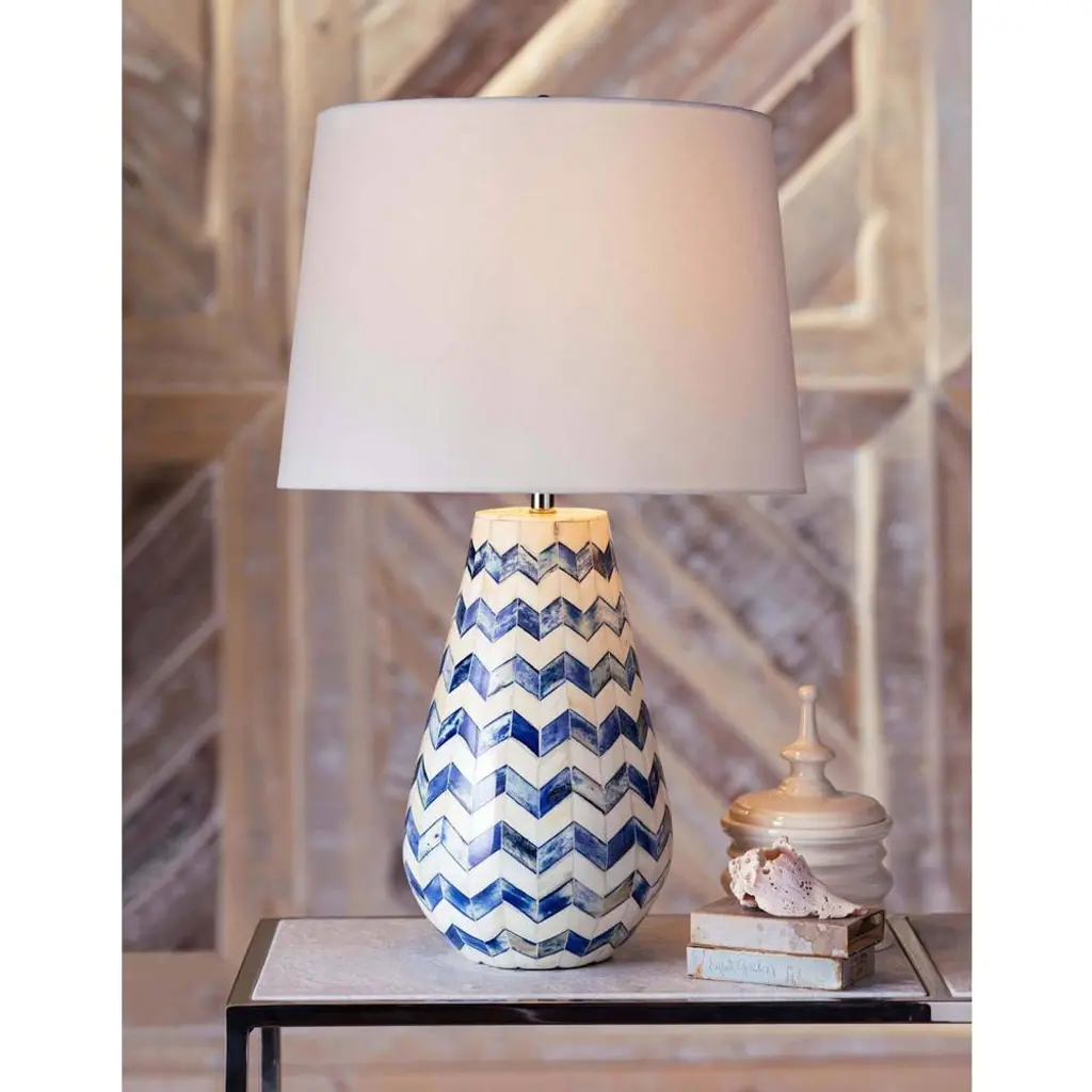 Cassia Blue Chevron Bone Table Lamp