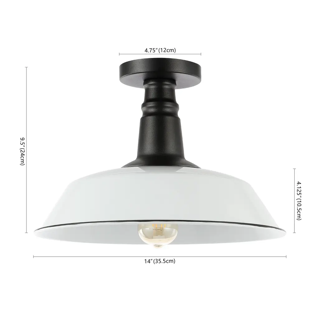This contemporary semi-flush mount blends farmhouse and industrial style. Its LED-compatibility makes it convenient and energy-efficient, and it's suitable for small spaces. Designers love the sleek finish and semi-exposed bulb. Features: About us: You see a lamp.We see a decorative work of art.A perfectly curved shade casts a dramatic shadow on a floor. Compatible with LED lightbulbs: as easy on the environment as they are on the eyes. The JONATHAN Y Lighting collection considers every detail from impeccably sourced materials to designer styling. And our prices are so attractive, we've transformed a functional necessity into a fashion accessory.JONATHAN Y Lighting - a fashion revolution in home decor.