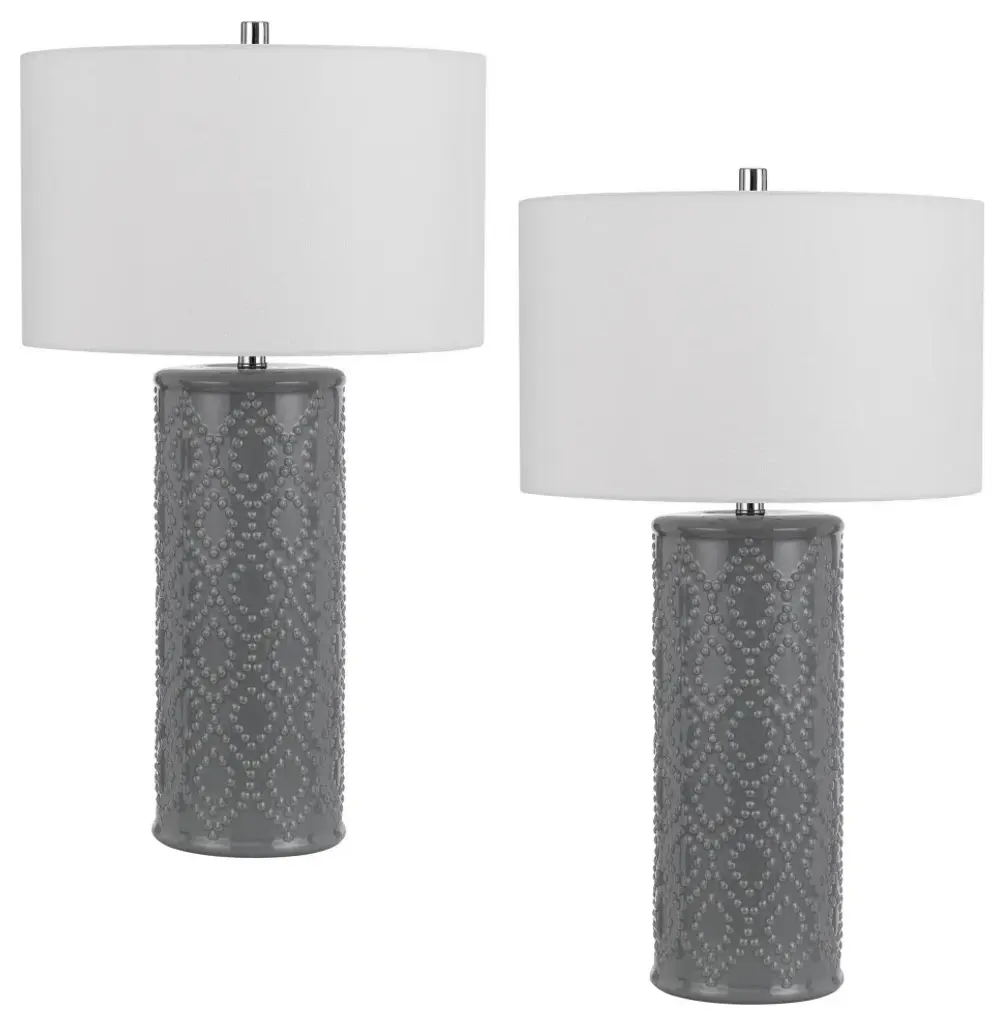 Add a touch of glam to your space with this pair gray diamond table lamps. These lamps feature a dur