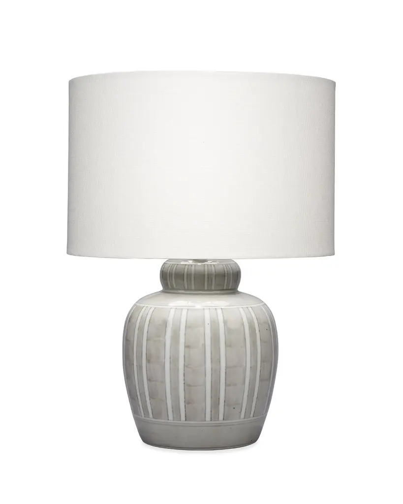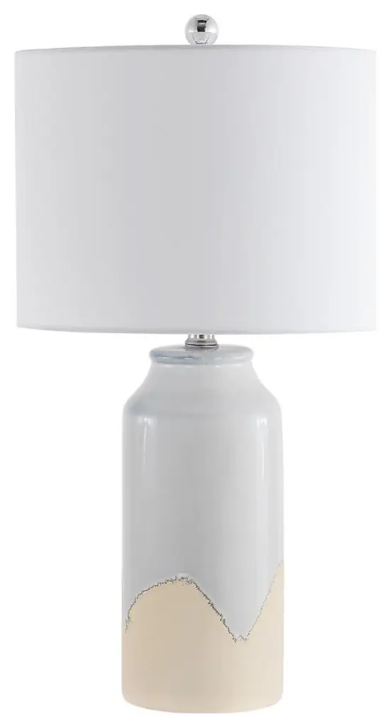 This evocative lamp is an ideal addition to a room designed to both sooth and comfort its occupants. Handcrafted and finished, with a ceramic and acrylic base, it was inspired by coastal horizons. We top it with rolled edge tapered drum shade, and a coordinating ceramic ball finial. No two will be identical.20"L x 20"W x 32.25"H. Weighs 23 lbs.Hand Finished Ceramic and Acrylic. Linen Fabric Shade.UL listed. Uses one max 150W Type A bulb (not included). 3 way socket switch.Heirloom Quality - Expertly hand crafted and hand finished. Due to the hand crafted nature of this piece, each piece may have subtle differences.