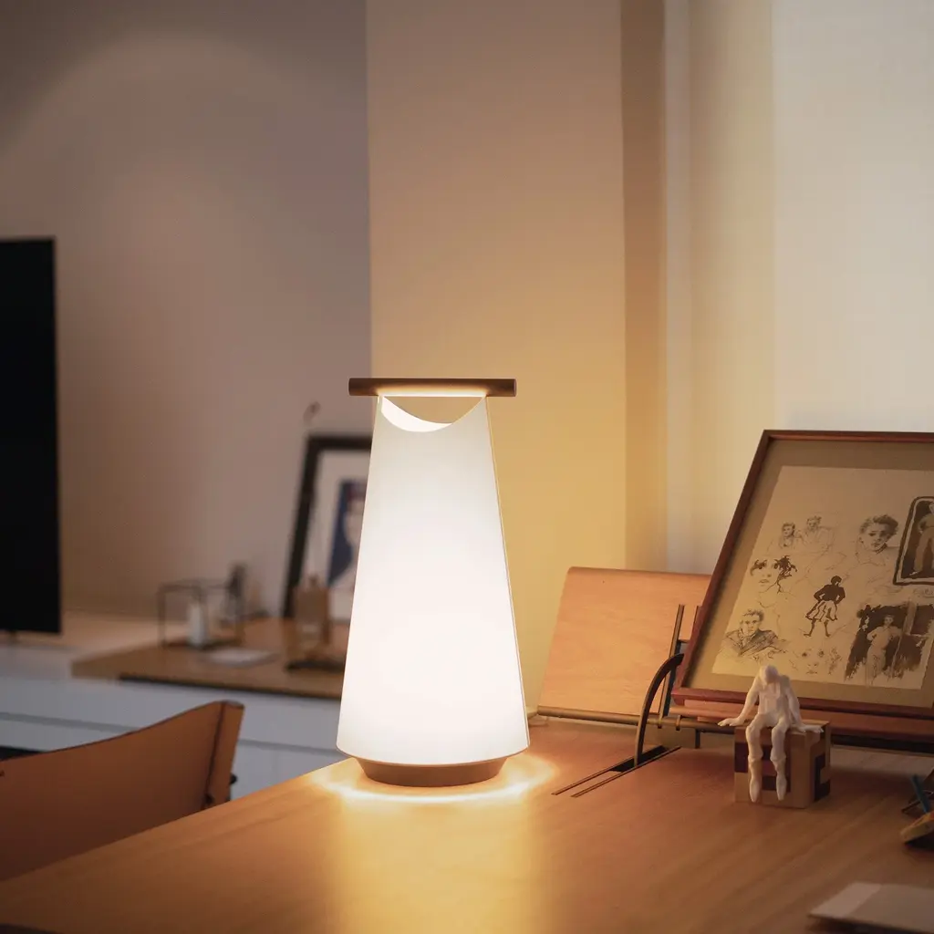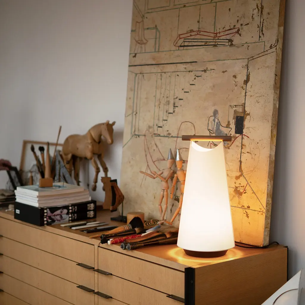 The Catay LED Table Lamp from Nomon blends natural wood elegance with the soft warmth of paper, creating a gentle, diffused light. Its minimalist, contemporary design is enriched by an oriental-inspired aesthetic and meticulous handcrafted finish, making it a refined addition to any sophisticated space. Made in Spain, each piece reflects the brands commitment to quality, while providing a striking way to elevate ambiance in any room. Highlights
