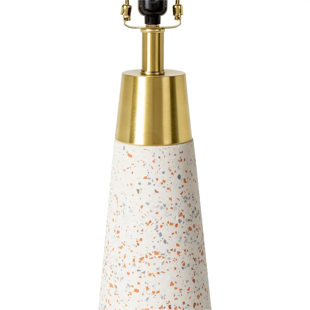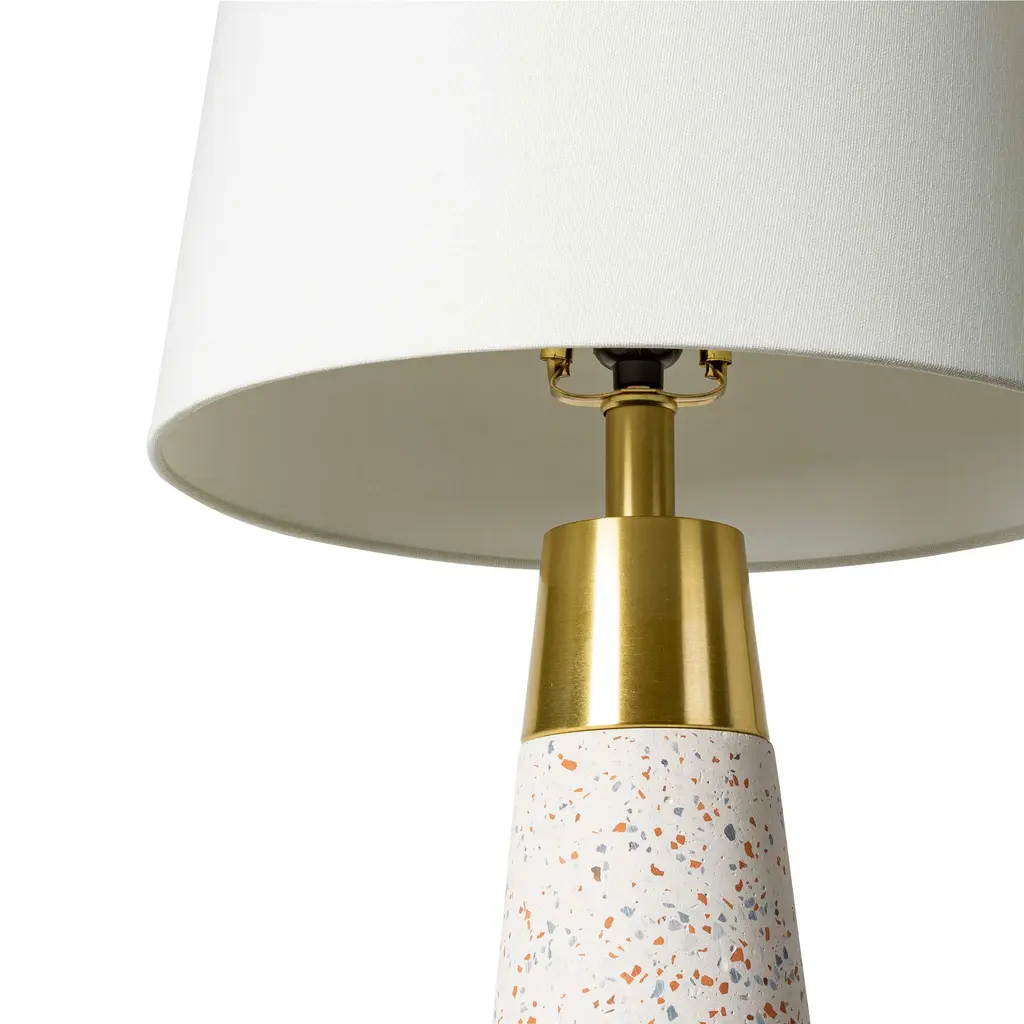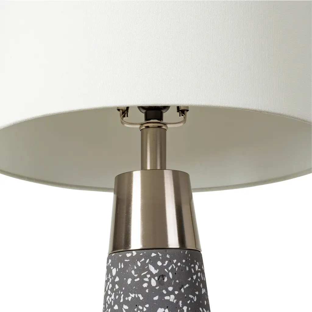 A fun, modern terrazzo print and sleek white shades make the Catelina table lamp set the perfect addition to your modern space. Add contemporary style to your living room side tables or bedside tables with this table lamp set. Overall Dimensions: 25"H x 14"W x 14"D,25"H x 14"W x 14"D. Includes a 6' cord and on/off switch. UL CUL certified. To clean, wipe with a dry cloth. Features:
