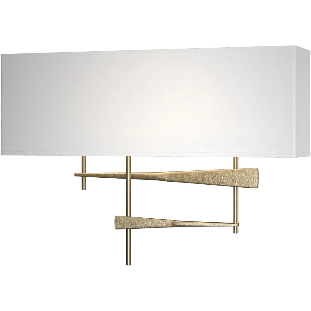 This high-quality table lamp features a contemporary geometric design highlighted in an artful asymmetrical grid-like pattern, both industrial and organic in form. The overall look is finished with a solid rectangular base giving it a grounded appearance. The perfect juxtaposition of dainty elegance and solid strength.Hand-forged wrought iron with customizable metal finish and lamp shade. Genuinely hand-crafted in Vermont using environmentally safe metal forging techniques. Powder coated finish.Shown in Natural Iron finish with Flax shade