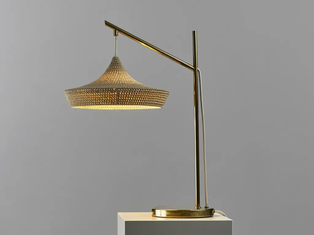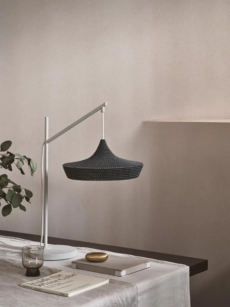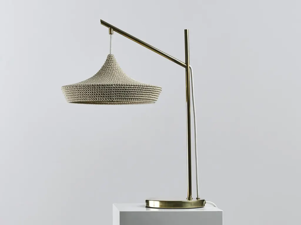 Cave table lamp by Naomi PaulDimensions: D 30 x W 43 x H 57 cmMaterials: Metal frame, Egyptian cotton cord.Color: Ecru.Available in other colors.Available in Inside edge colour or plain color finish.LIGHT / SHADE collection are down lights, V2 GLÜCK, CAVE and VEX.Designed in response to a need for beautiful and unique direct lighting. A double cloth lower section cleverly conceals the framework for a seamless finish. Sharp lines focusing light in or flooding light out, compliment tactile curves in this collection.VEX and CAVE are the pendants to choose where multiple lights are required. Extremely versatile, they can be clustered together or individually suspended above a table as a single elegant down light. Their uniform look can be customized with colour to create a beautiful, unique and inviting space.Naomi Paul is a London design studio where hand crochet is elevated from craft to art.Naomi Paul’s lighting designs are unique. Iconic silhouettes combine with functional integrity. Together with her highly skilled team, the studio is dedicated to perfection.The crocheted lighting collections include simple and statement pendants. Luminescence and acoustics are enhanced by uniform stitching and quality of the fabric. Each piece glows with a warm ambience, a result of the time, care and attention to detail invested by hand-making.Collaborating with internationally renowned architects and interior designers, Naomi Paul’s designs transform spaces into exceptional places.All our lamps can be wired according to each country. If sold to the USA it will be wired for the USA for instance.