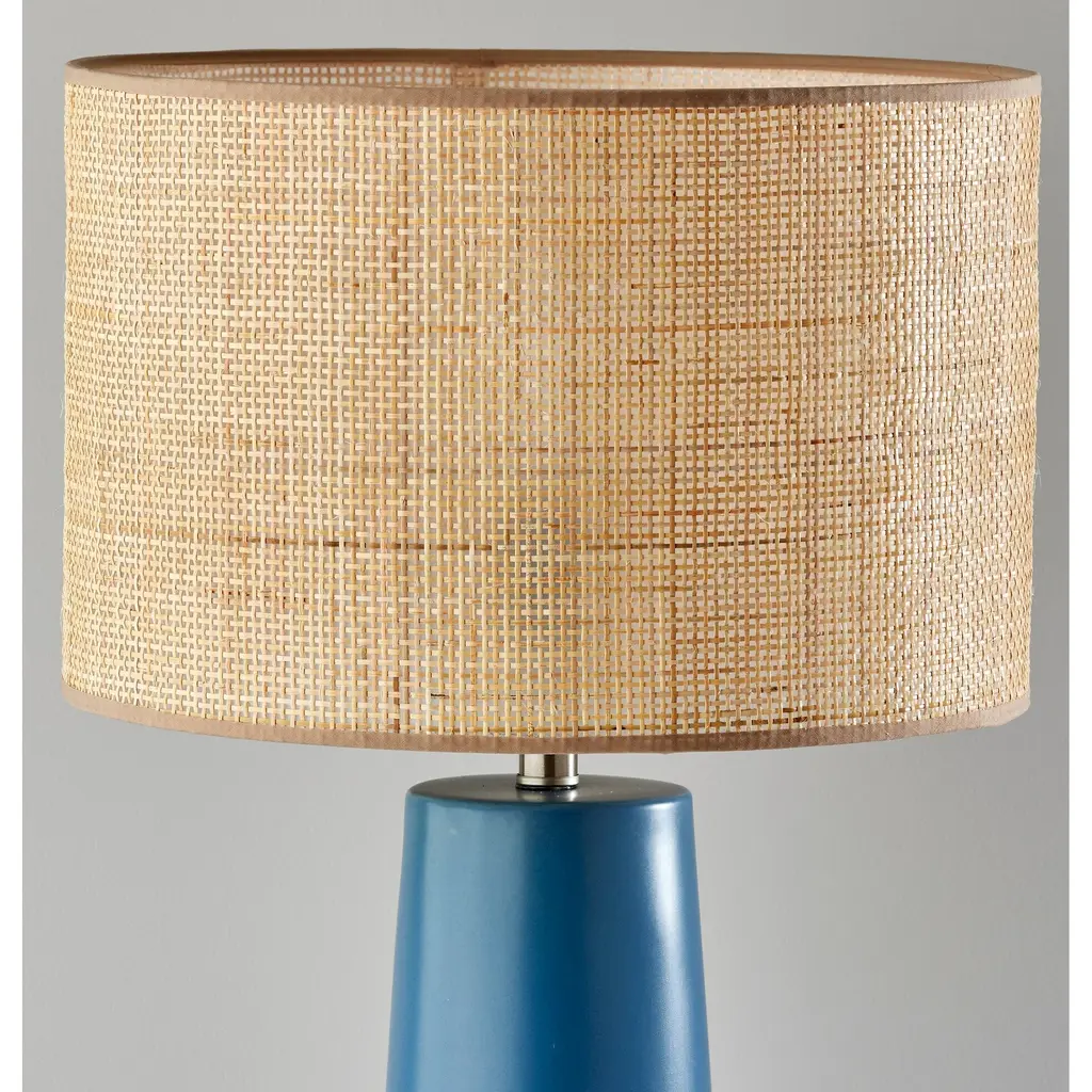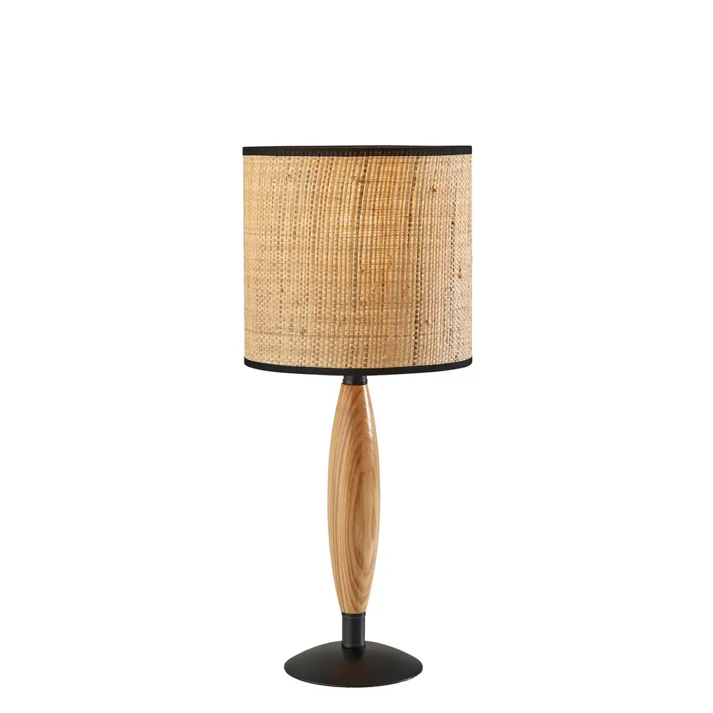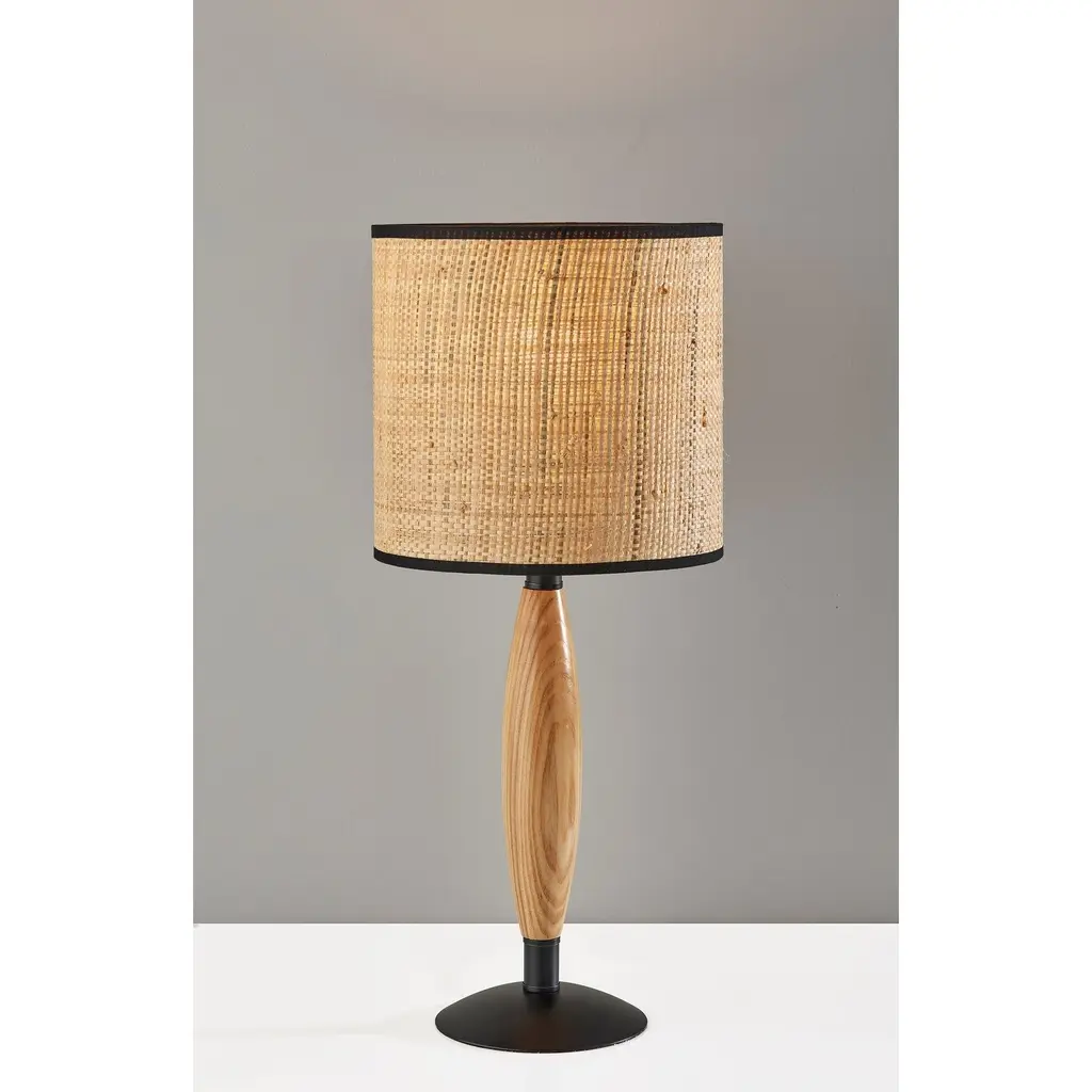 The perfect addition to coastal, transitional, or farmhouse décor, the 22.5" tall Cayman table lamp imbues any space with a stylish blend of materials. A round black metal base supports a sleek stem crafted of natural wood that highlights the attractive wood grain. Topping the lamp is a 9" tall drum shade. The lamp's woven natural rattan shade softly disperses the light from a 100W bulb and is trimmed with black fabric along the top and bottom to complement the black metal base. A 3-way rotary socket switch provides a variety of lighting options, allowing you to easily adjust the brightness between low, medium, and high. Complete your décor with the coordinating 63" tall Cayman floor lamp.