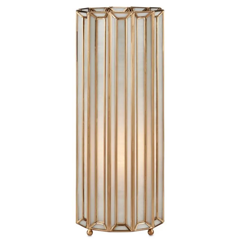 Cazelle Hollywood Regency Antique Brass Paneled Uplight Table Lamp