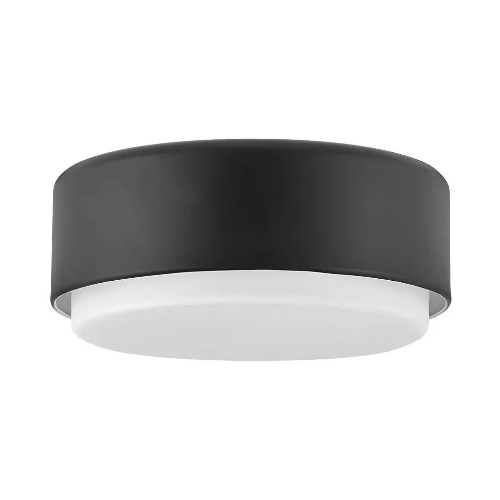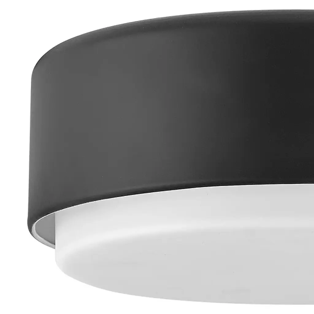 Expand your indoor living spaces with the sleek design and simple presence of the Cedric Drum Flushmount from Hinkley. Starting with a smooth steel drum canopy that also serves as a shade, it places two potent lamps beneath a smaller bowl diffuser shade of etched opal glass. This diffuser extends out slightly below and from slightly inside the shade, creating a layered, modern look that plays with solid surfaces and negative space.