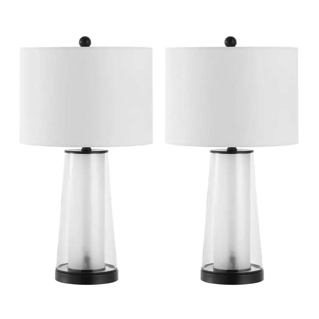 The frosted glass finish on our versatile modern lamps make them the perfect neutral for almost any interior. Turn on the second bulb in the base for extra glow, or use it as a night light. Add low-key farmhouse style to the bedroom, living room, or dining console with this chic pair of lamps.Features:Dimensions:About us:You see a lamp.We see a decorative work of art.A perfectly curved shade casts a dramatic shadow on a floor. A silk cord you never want to hide. Compatible with LED lightbulbs: as easy on the environment as they are on the eyes. The JONATHAN Y Lighting collection considers every detail from impeccably sourced materials to designer styling. And our prices are so attractive, we've transformed a functional necessity into a fashion accessory.JONATHAN Y Lighting - a fashion revolution in home decor.