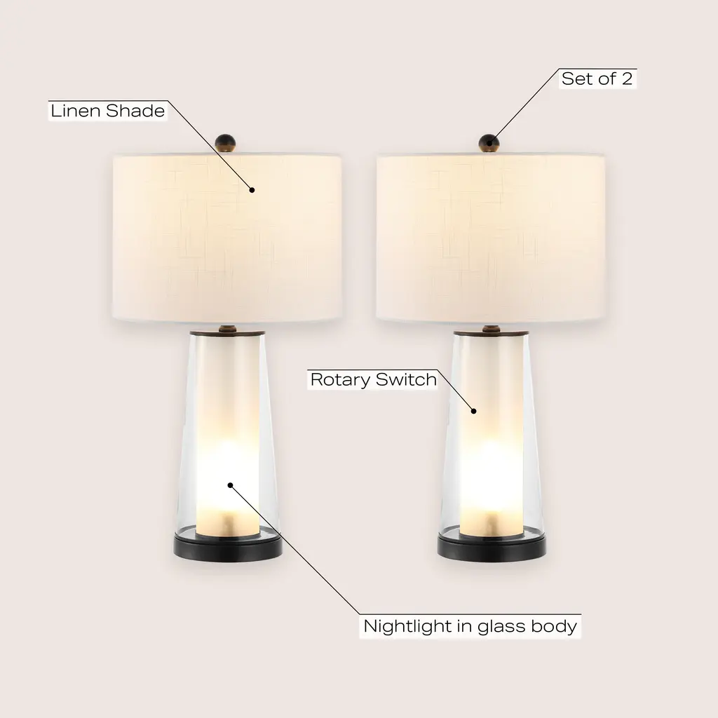 Celerie 26" Modern Minimalist Glass/iron Nightlight Led Table Lamp, (Set Of 2) By Jonathan Y - Oil Rubbed Bronze/clear