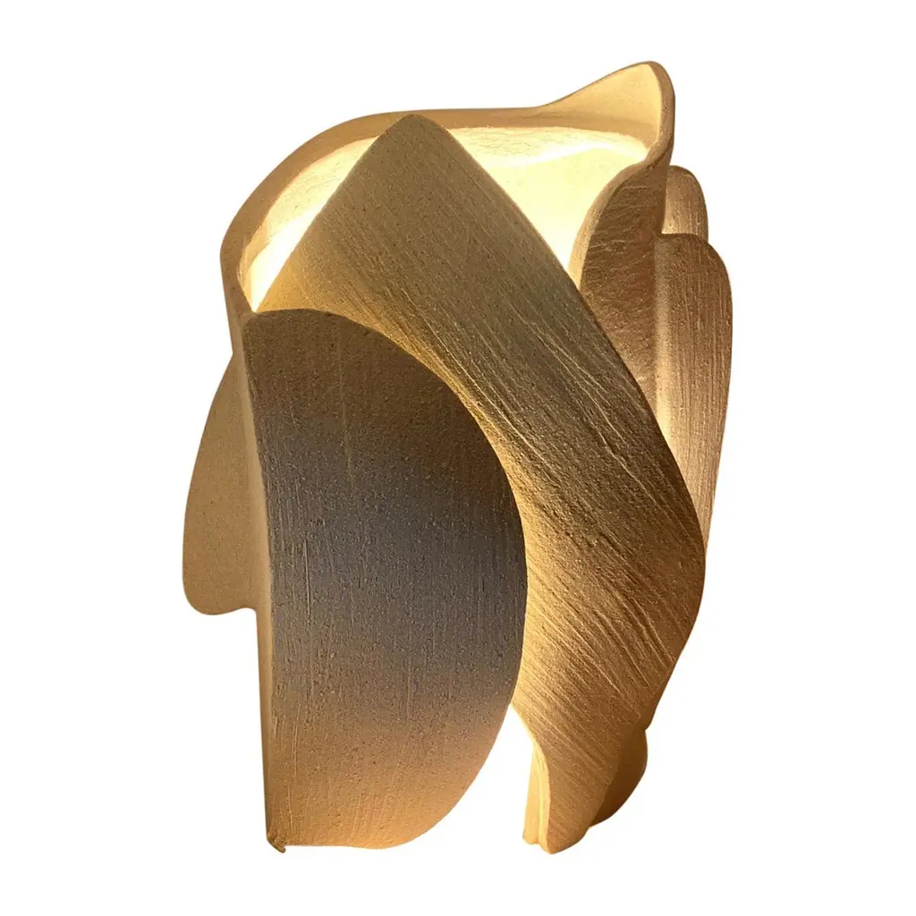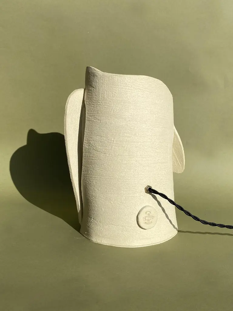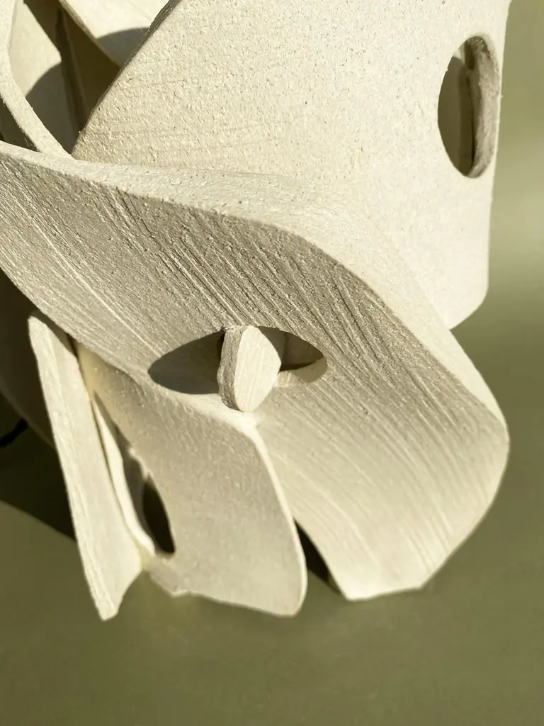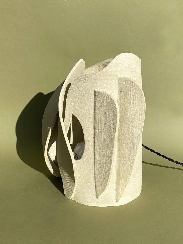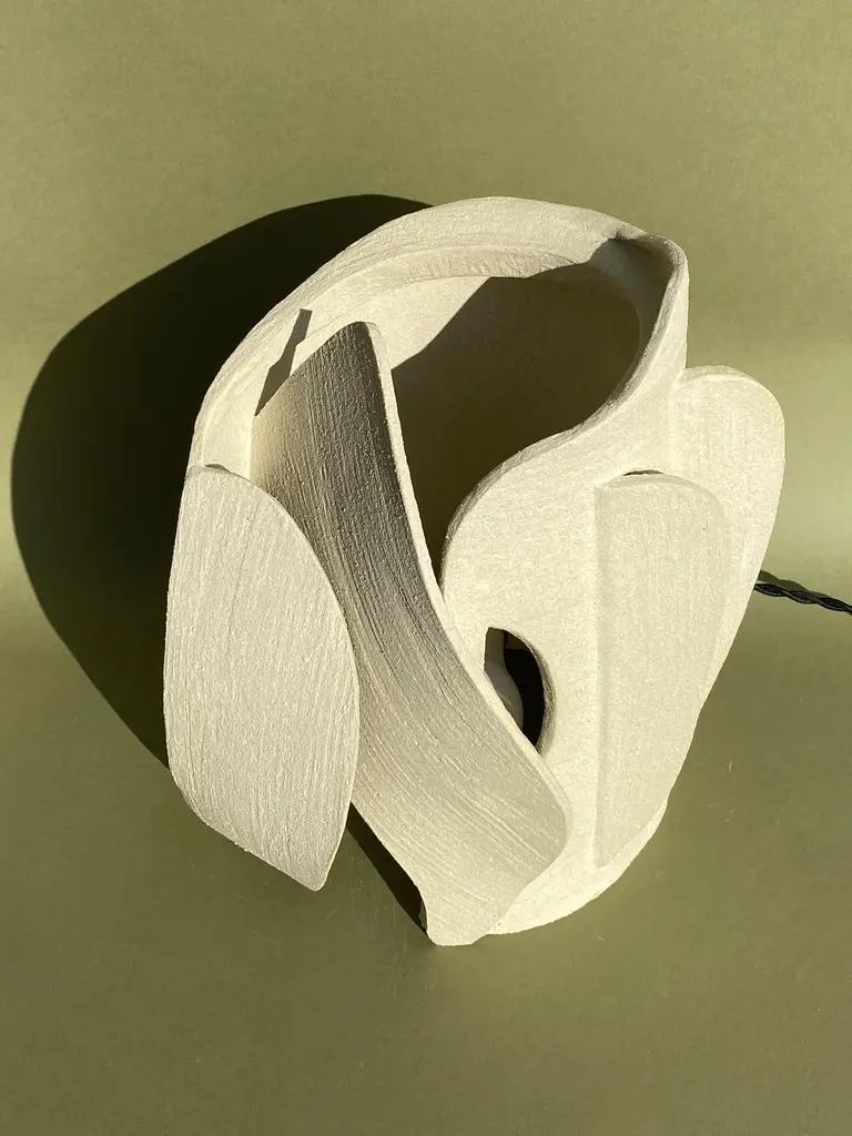 Ceramic table lamp by Olivia CognetMaterials: CeramicDimensions: around 40-50 cm tallAvailable in different sizes, finishes.A new take on the curves of nature in a series of lamps that produce a diffuse light created by a subtle interplay of layers. Each of Olivia’s handmade creations is a unique work of art, the snapshot of a precious moment captured in a world of fast ‘everything’.Since moving to Los Angeles in 2016, French artist and designer Olivia Cognet has focused on ceramics as the fertile medium through which she expresses her boundless creativity.With the freedom this material affords to explore every type of shape and size, she creates monumental bas-reliefs and giant totems as well as chairs, tables, lamps and vases.These unique pieces, handmade by the artist in her studio, all share the same high aesthetic, abstract and graphic standards. She draws inspiration from the lights and shadows of the landscapes of California, its modernist architecture and intense nature.Infusing a modern take on the great tradition of decorative arts, her works are both functional and powerfully evocative.Olivia Cognet grew up in Nice on the Côte d’Azur, studied at the Villa Arson and was nourished by the brilliant masters from the school of Vallauris, from Picasso to Roger Capron; for her, ceramics are a key element of architecture.She starts by exploring ideas on paper, before moving to stoneware, using a local clay that comes in three natural shades. Her designs showcase the power of contrasts; her minimal, geometric lines are interwoven with a sensual and organic vocabulary.The austere aesthetic of rough clay is heightened by the elegance of the crackle glazes, which generate singular effects.Elsewhere, ethereal excrescences defy the laws of gravity.Day after day, guided by her intuition, Olivia Cognet reinvents the poetic experience of creation, fashioning work through the purity of the material. This is the magic of the artisan, combined with the promise of vibrant beauty, to enhance everyday life.Marion Vignal.
