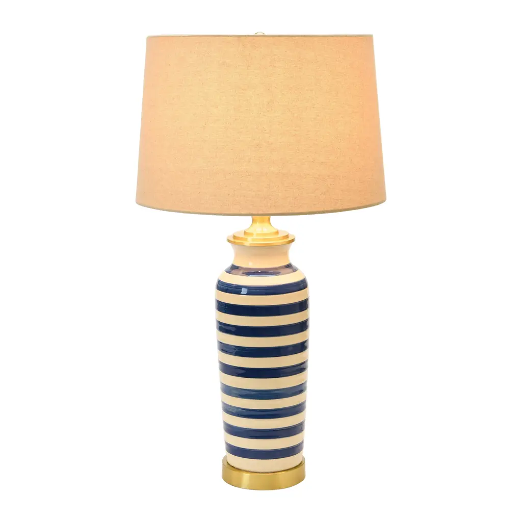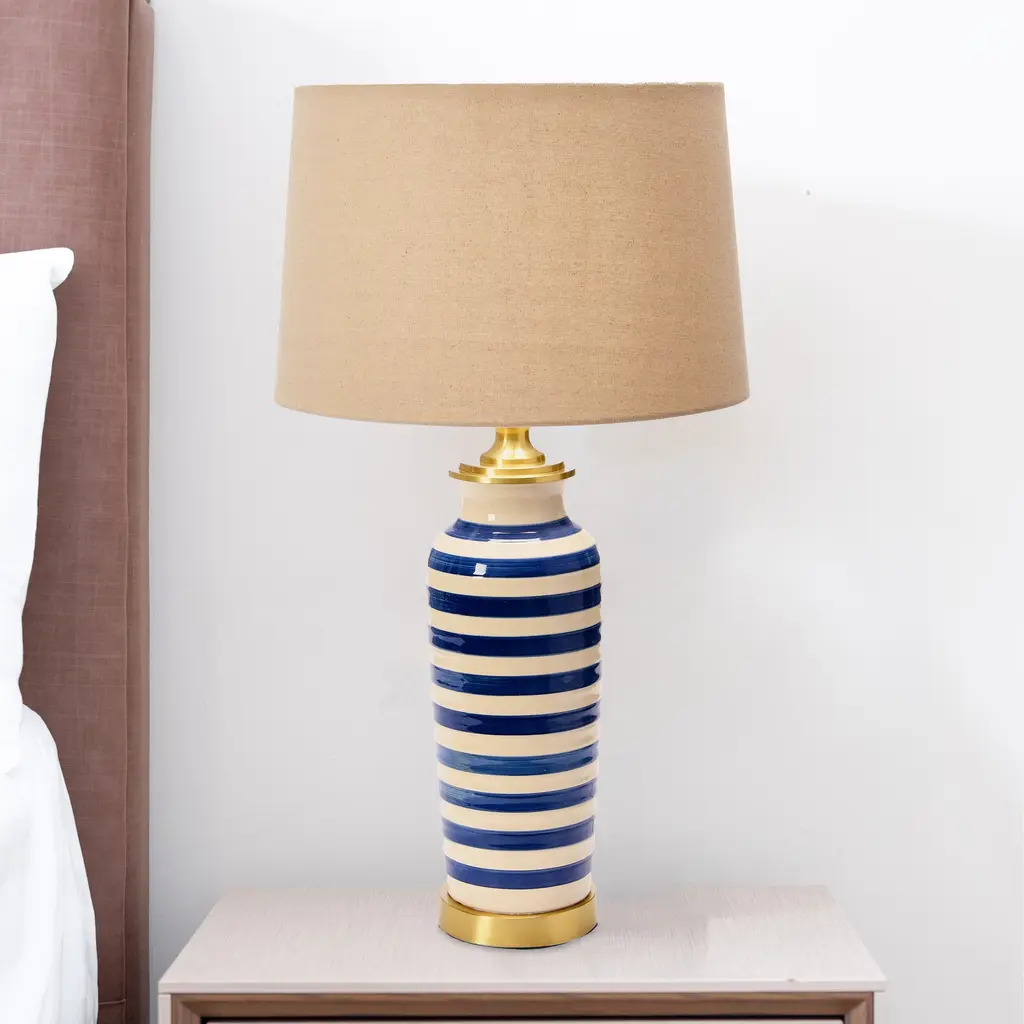 Ceramic Table Lamp With Brushed Accents - Blue