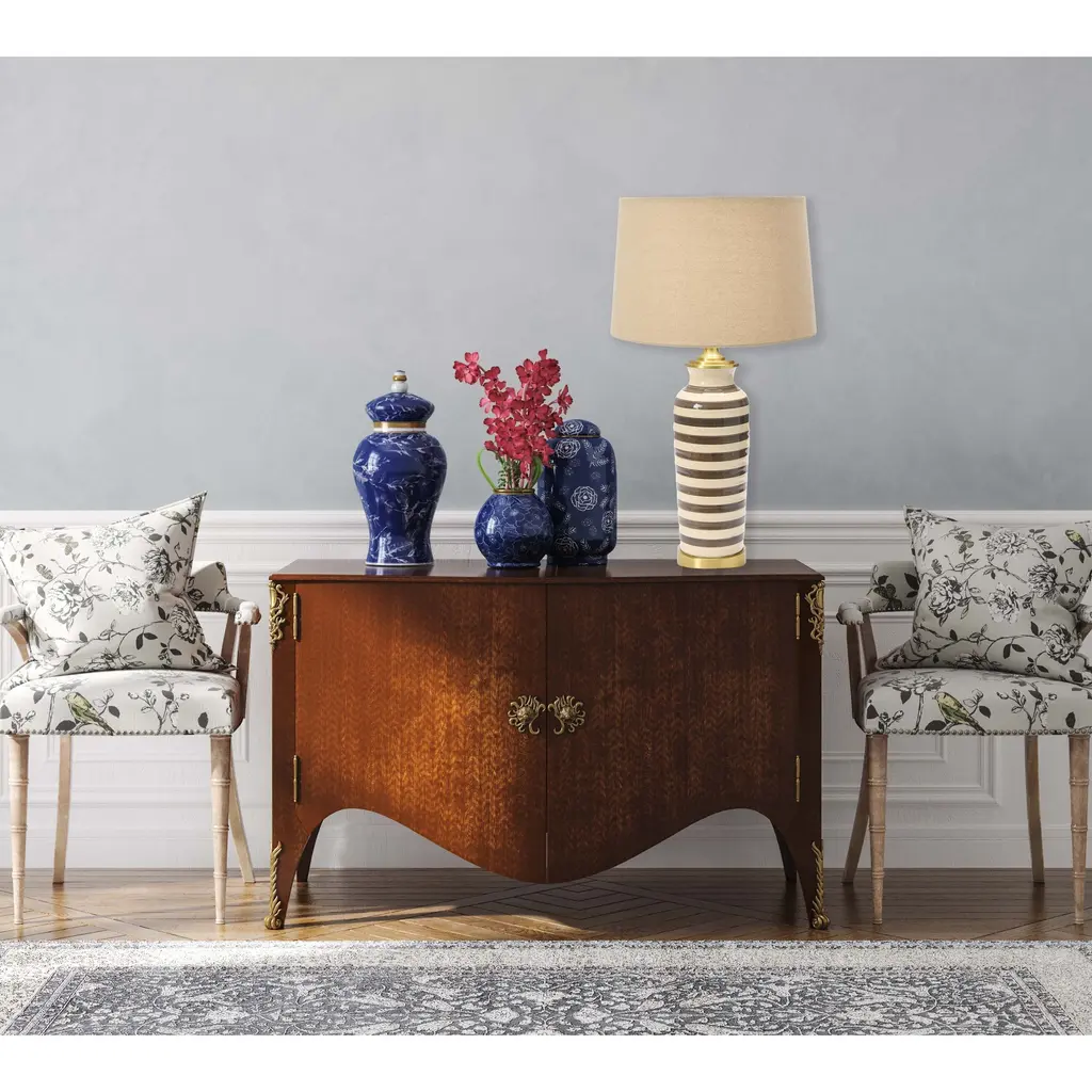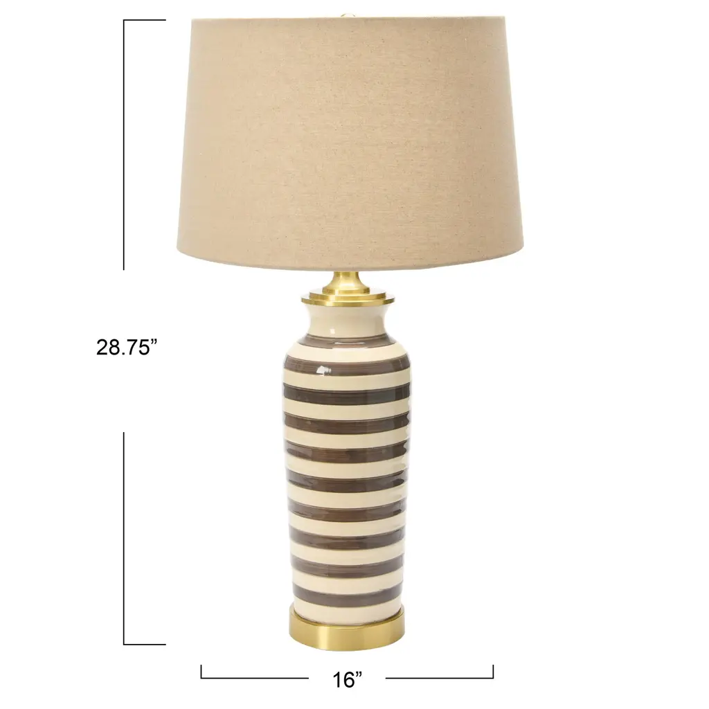 Ceramic Table Lamp With Brushed Accents - Khaki