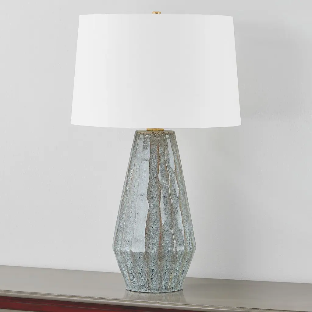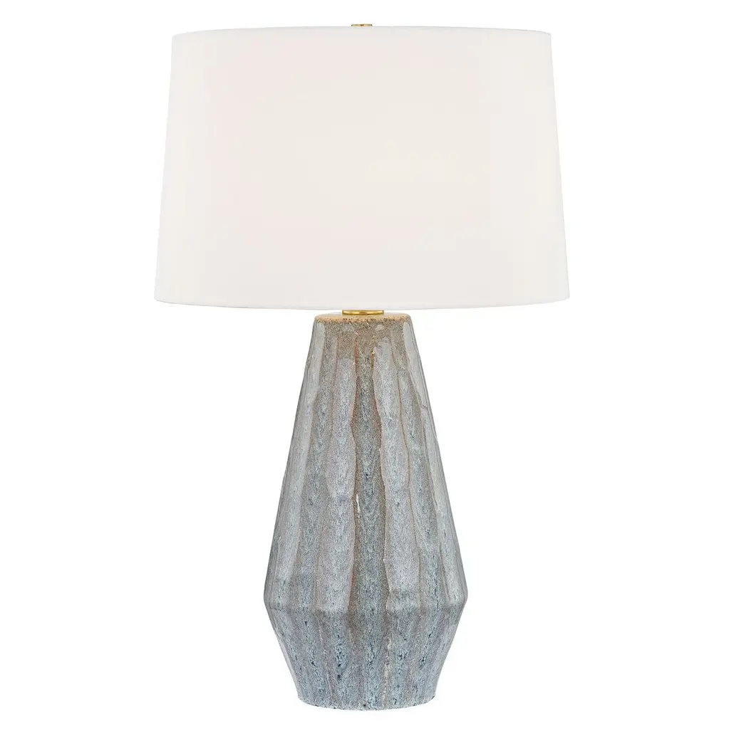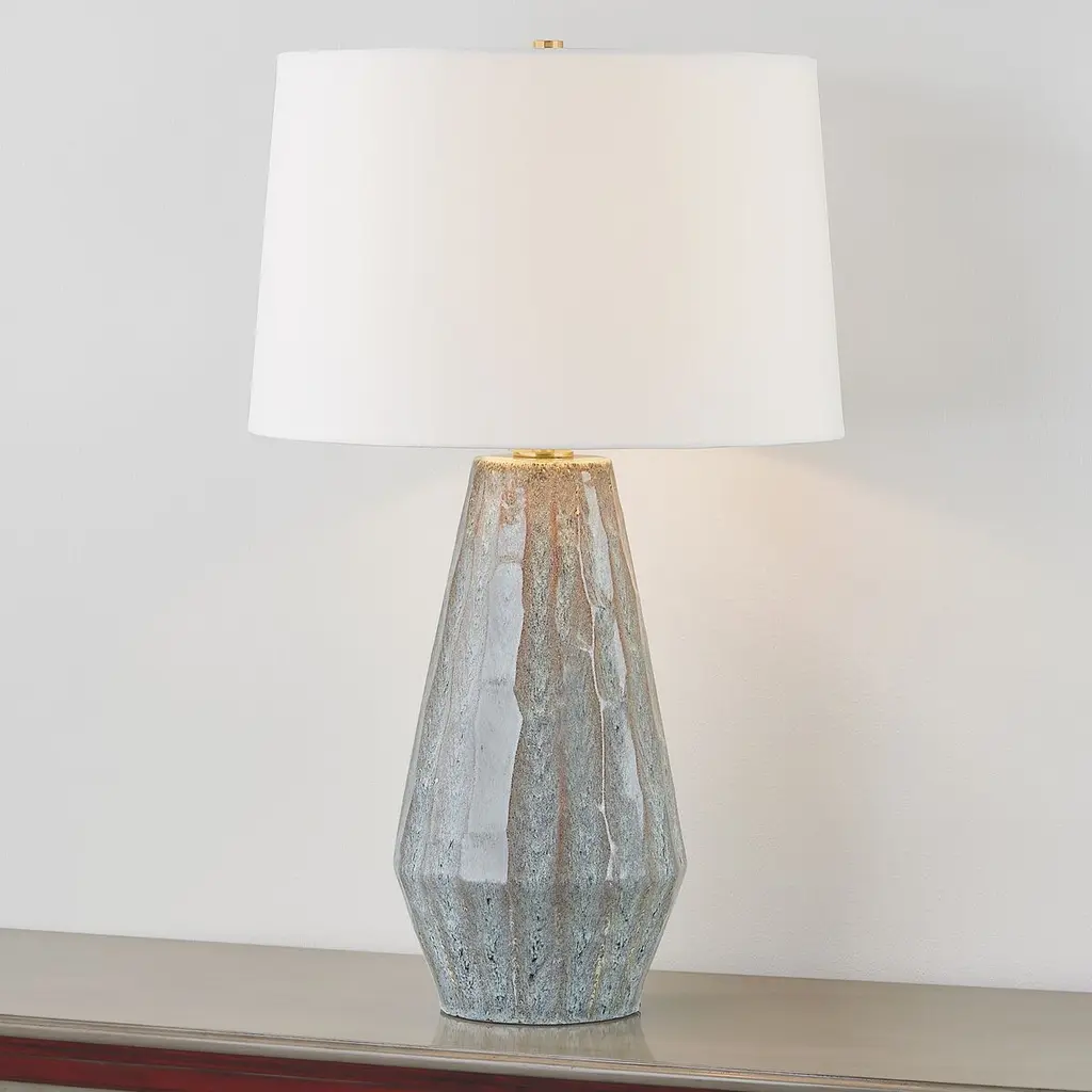 A ceramic lamp featuring a narrow double-tapered base, Cerise evokes understated artistry and a sense of groundedness. Finished in a swirling two-toned, coastal-inspired glaze, the base adds visual complexity and a handcrafted feel to the fixture. The white linen drum shade lends a classic touch to a simple form made modern through its glaze. Due to the one-of-a-kind nature of the medium, exact colors and patterns may vary slightly from the image shown.