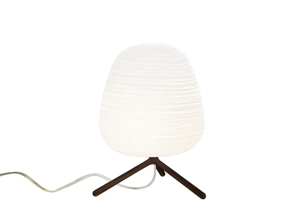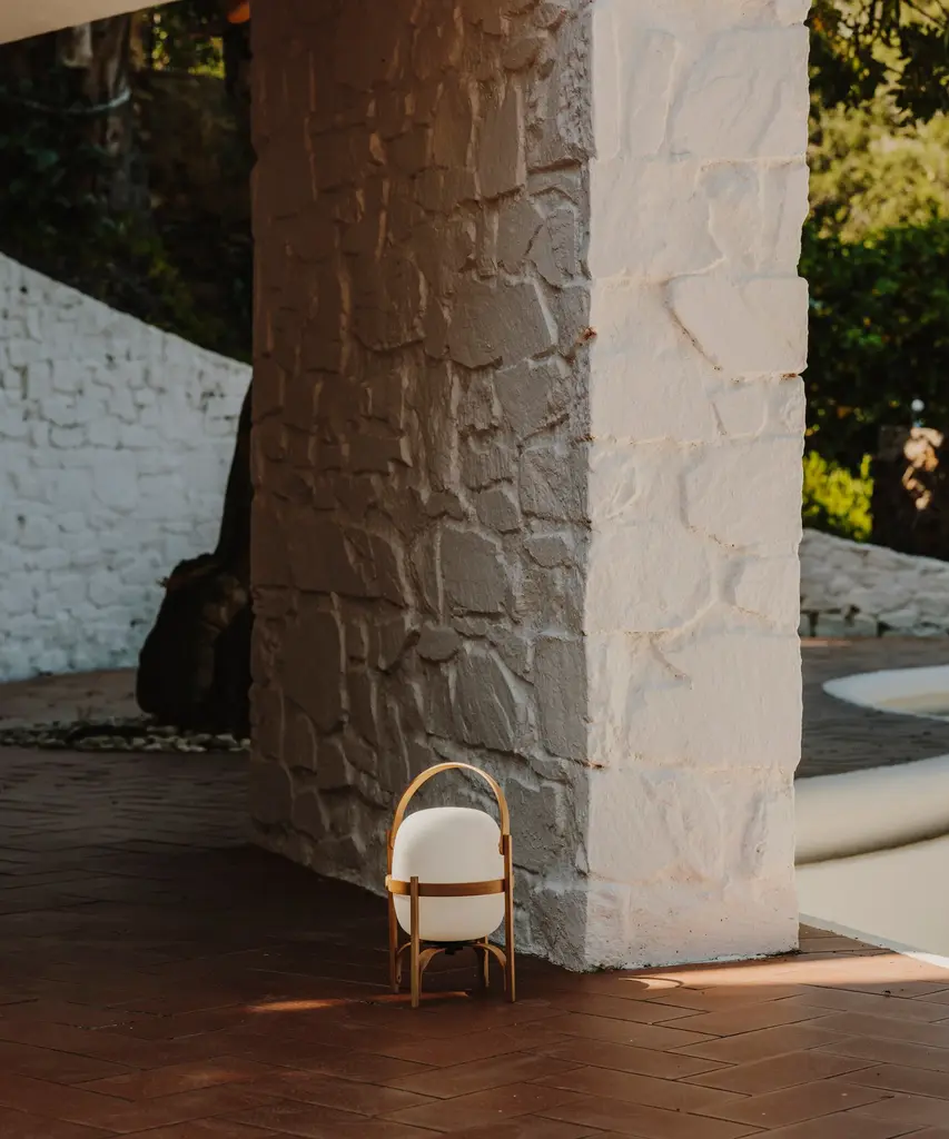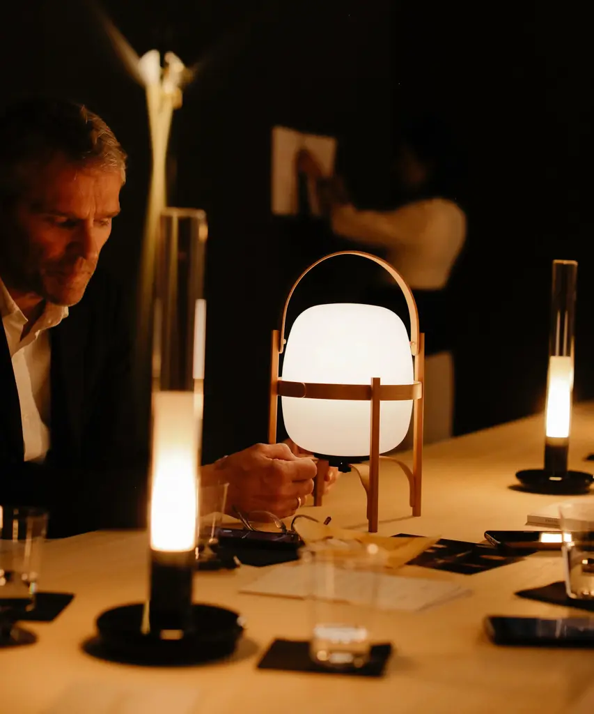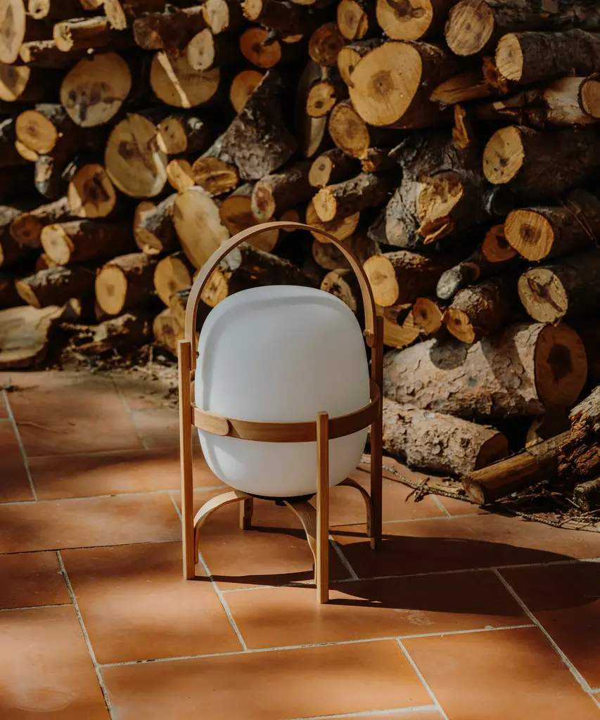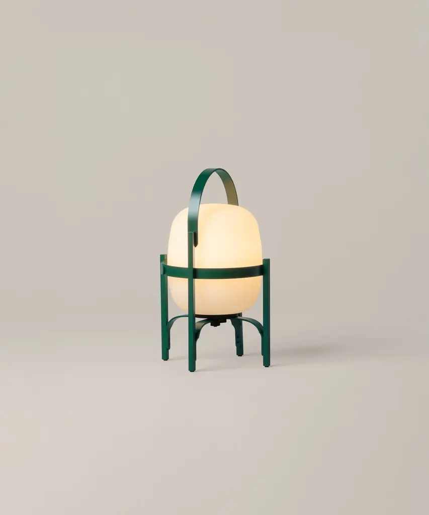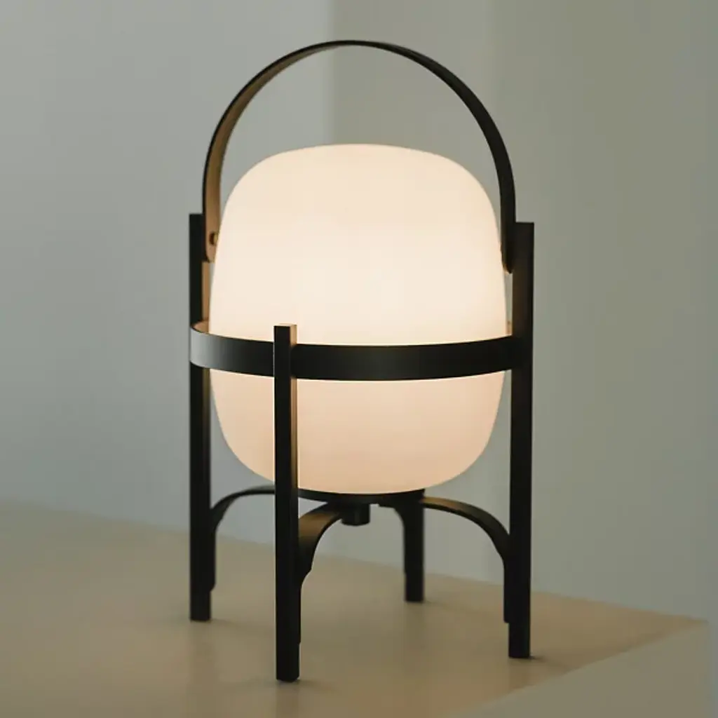 Cestita Batería is the new member of the Cesta family: a portable, cordless version. As with all of Milás objects, this version champions industrial craftsmanship, by combining functionalism and the legacy of local artisan creation. Keeping with the family's warmth and spirit, it features an opal glass shade supported by a beautiful cherry wooden structure. It is produced and assembled manually by European craftsmen, using traditional, steam bending techniques for the wood, and glassblowing techniques for its opal shade. Produced by the Barcelona-based lighting purveyor, Santa & Cole.