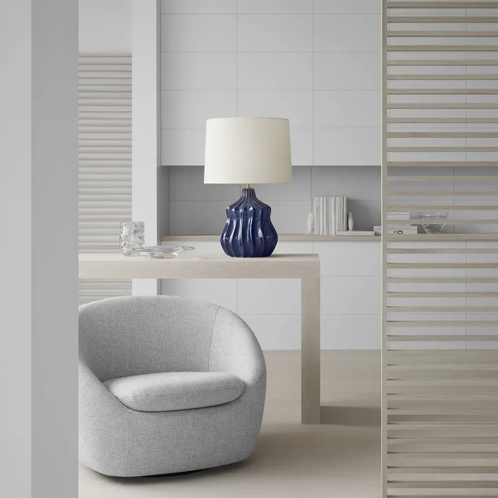 Ebb Large Table Lamp in Mixed Blue Brown with Linen Shade