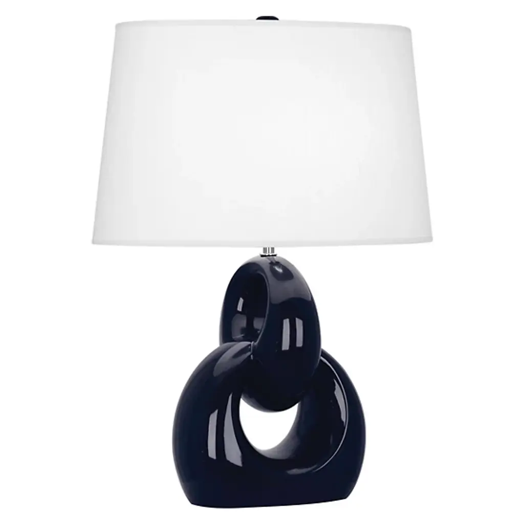 Sutro Medium Right Table Lamp in Mixed Blue Brown with Linen Shade