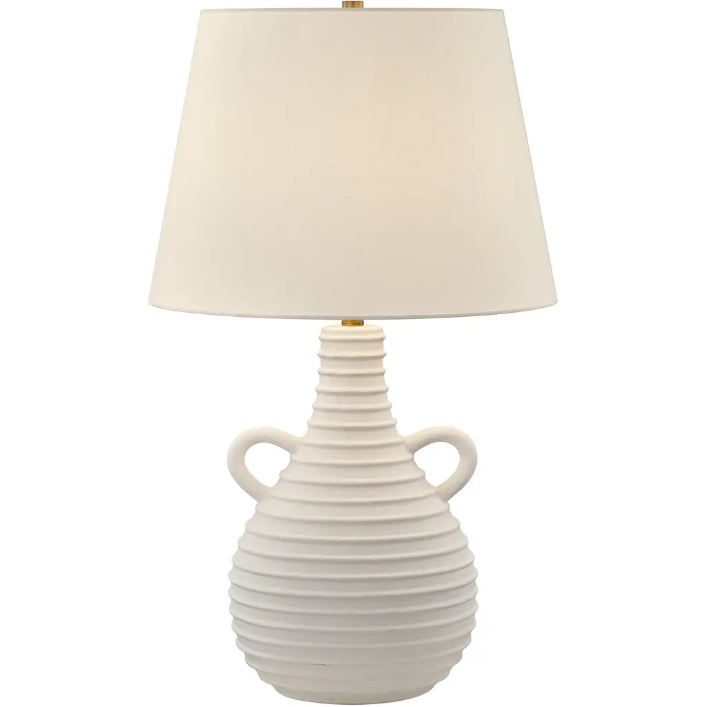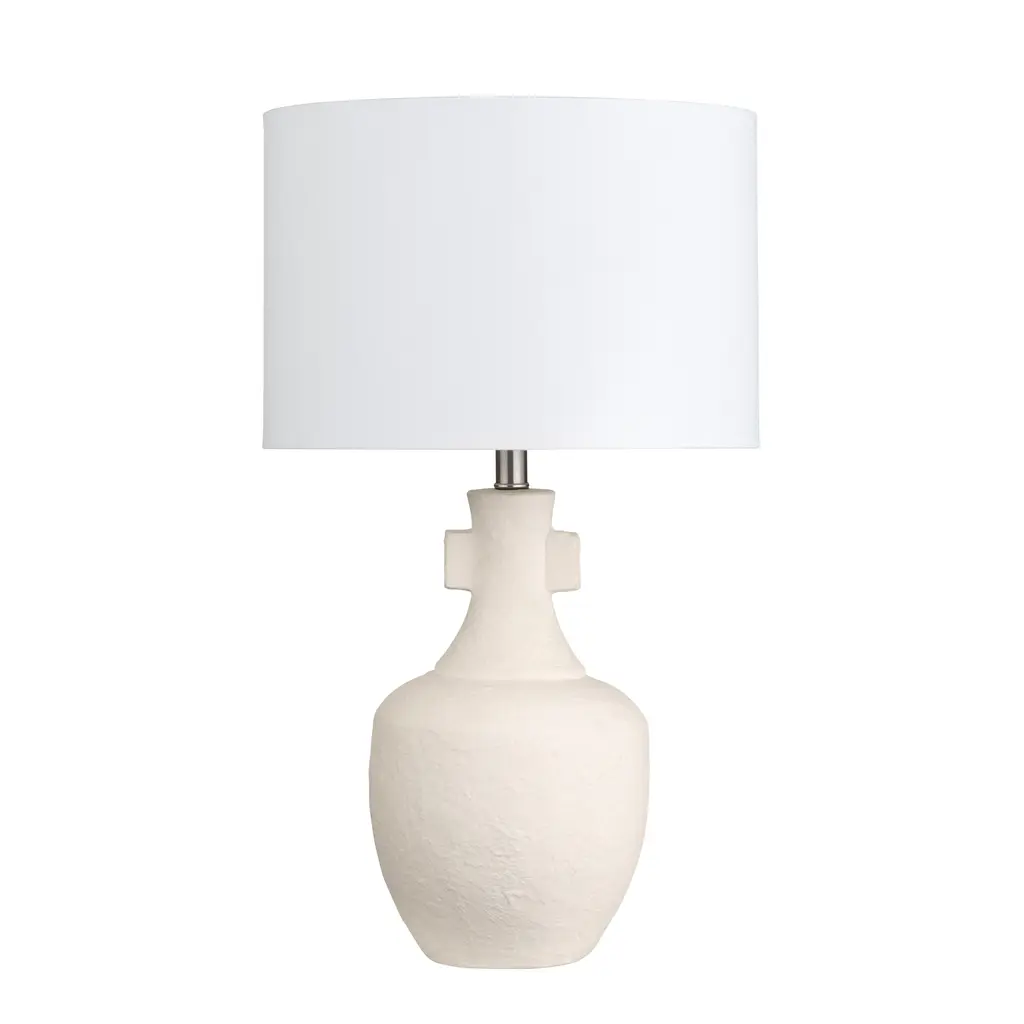Make a valuable addition to inside surfaces with the intricate, vase-like character of the Chandra Metal Table Lamp from Regina Andrew. An aluminum body surfaced with paper mache for that touch of artistic antiquity provides a stable column for the fixture’s lamping, which rises inside a cylindrical shade of smooth-textured natural linen. The lamping is activated by a three-way socket switch, casting a mellow glow through the translucent shade that illuminates its surroundings with effortless ease.