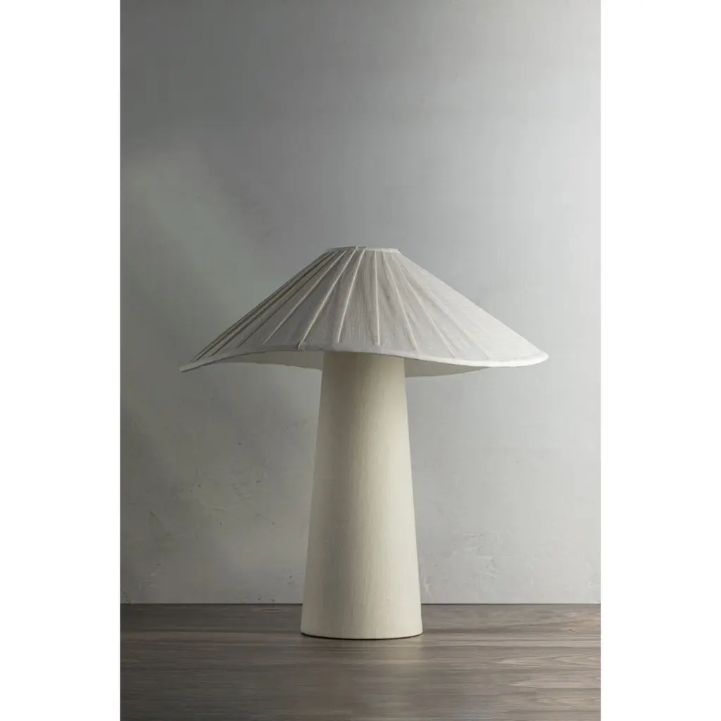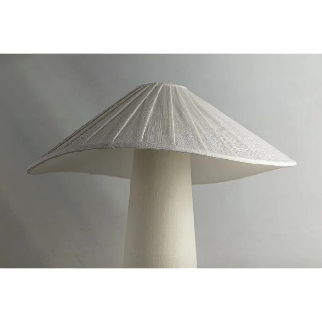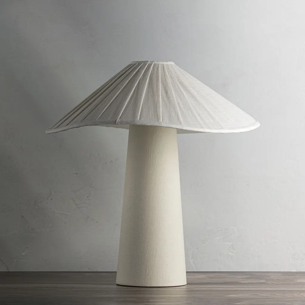 Chanterelle's pleated natural linen shade feels soft and fresh and the undulating edge adds sophistication and movement. The tapered base is also wrapped in natural linen, creating an allover linen materiality and clean monochromatic palette that makes this modern organic table lamp feel right on trend.