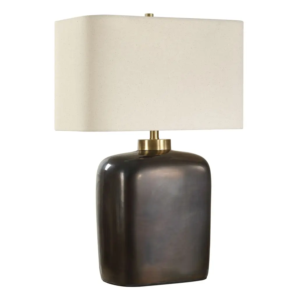 Lucera Medium Table Lamp in Stained Black Metallic with Linen Shade