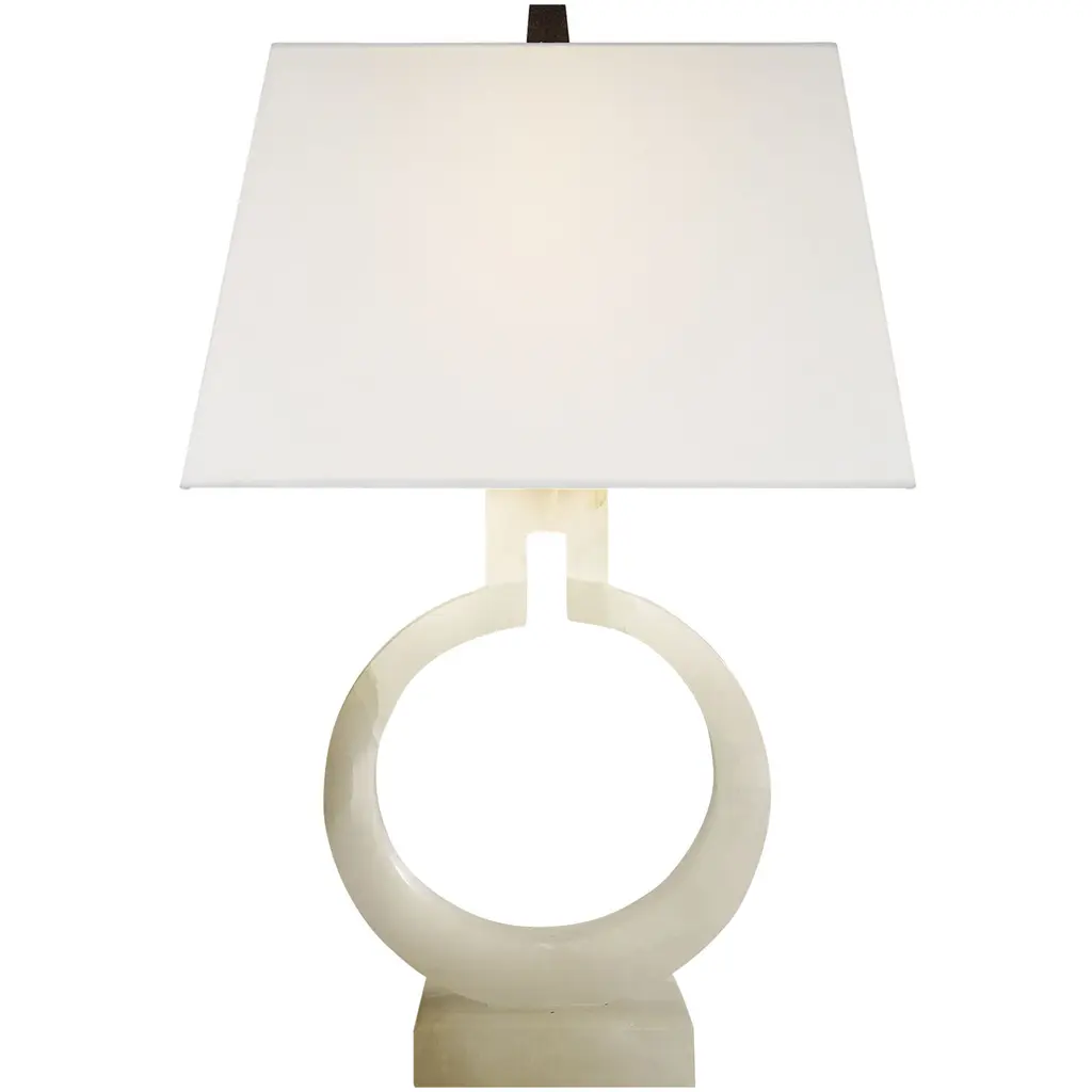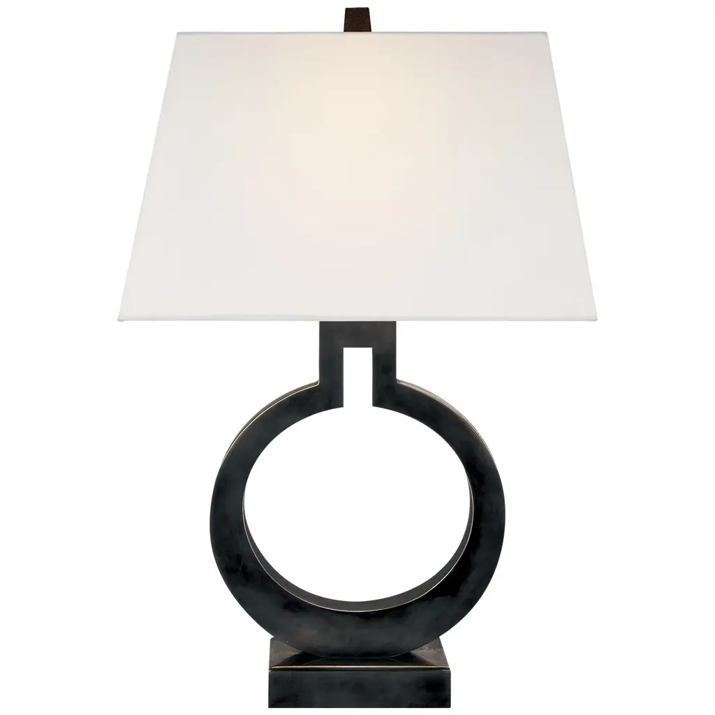 Ring Form Small Table Lamp in Bronze with Linen Shade