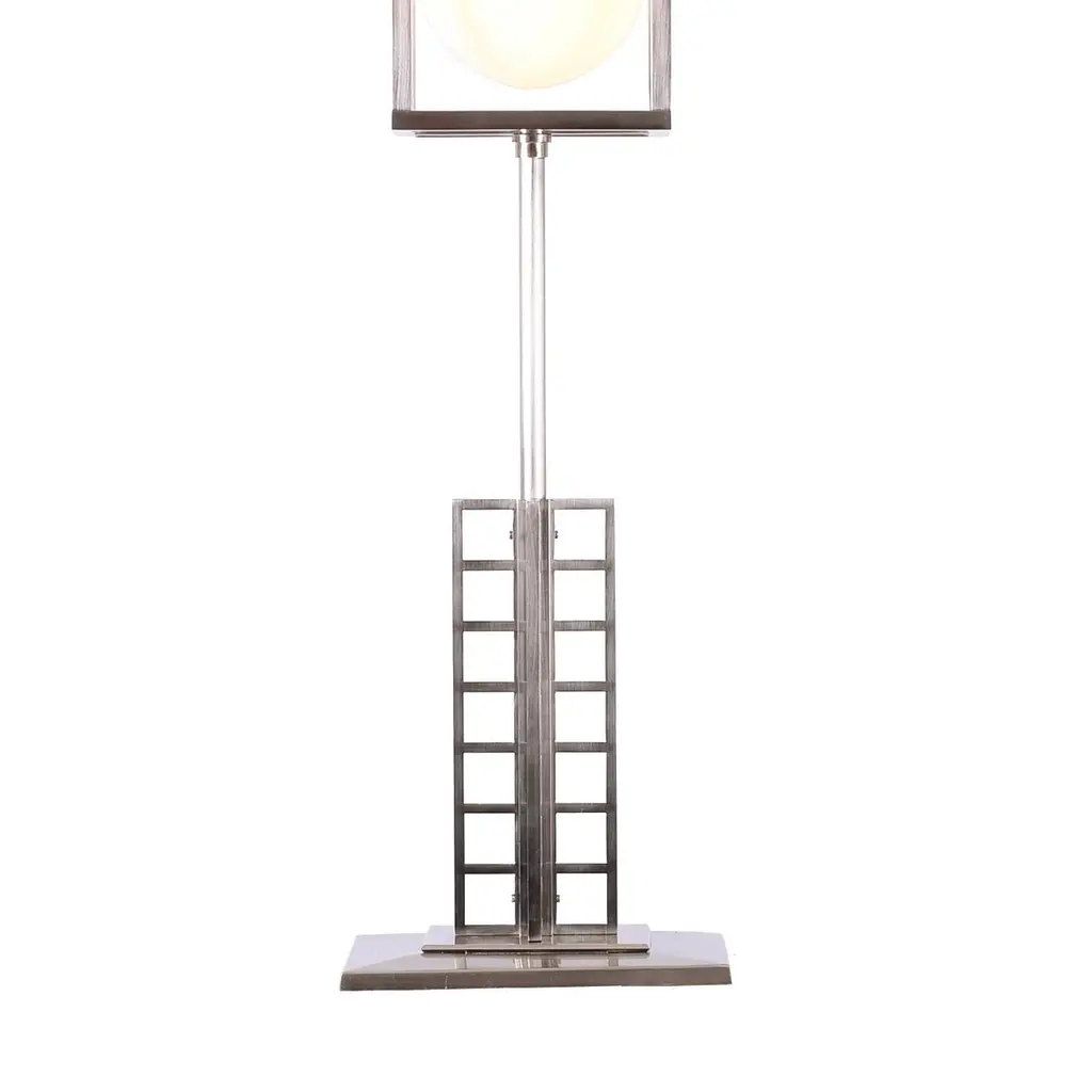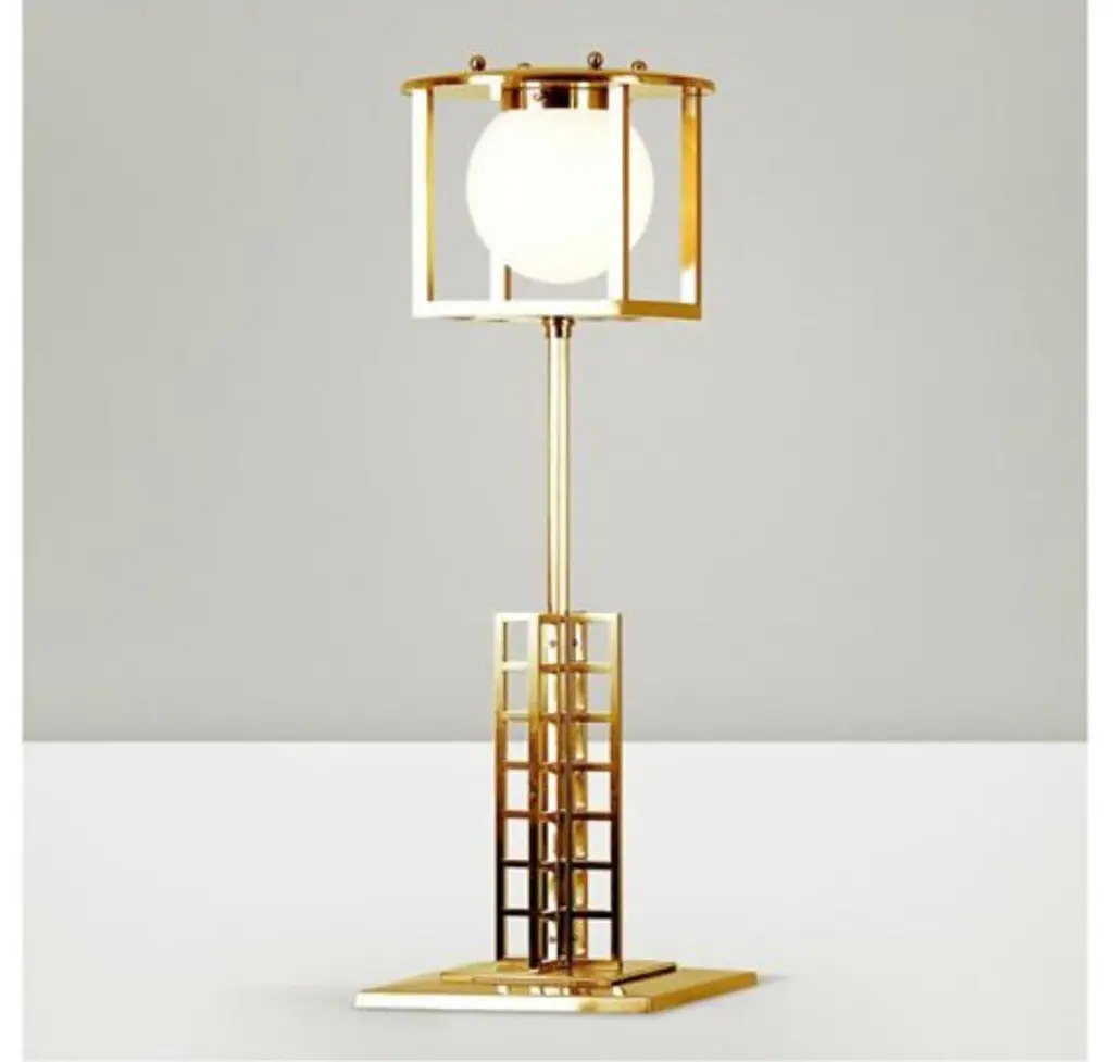 A table Version from the model, originally designed as a street lamp for the "Glasgow School of Art", this lamp shows the great Viennese influence, as Mackintosh exhibited 1900 together with his wife Margaret MacDonald at the Viennese Secession, curated by Josef Hoffmann, were the "New Style" first was presented and were he received international recognition. With this lamp, he was given up the floral touch known from his earlier works and he followed the clear and cubistic line for which Josef Hoffmann was known> see the first cubistic sculpture, Hoffmann designed in 1902! Material used is brass.Most components according to the UL regulations, with an additional charge we will UL-list and label our fixtures.