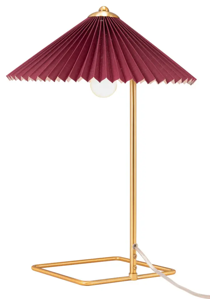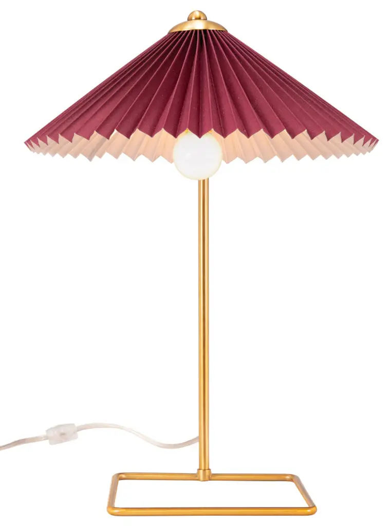 The Charo Table lamp has steel body and a polyester shade. This lamp has deco glam desigh that fits in any bedroom, desk, or foyer.