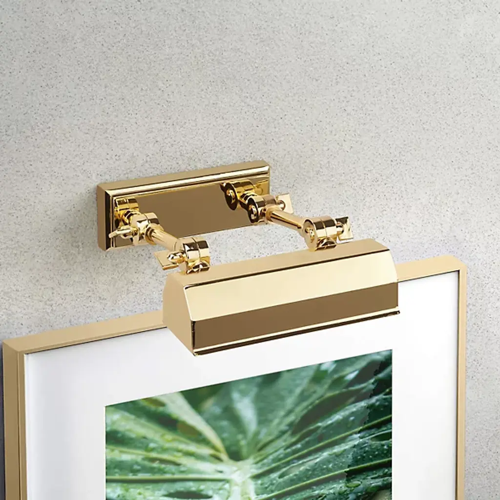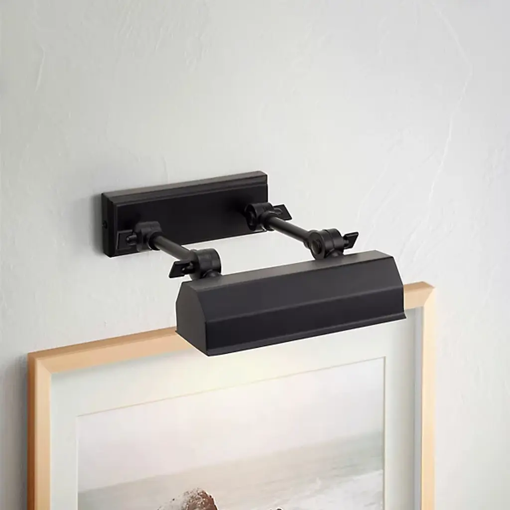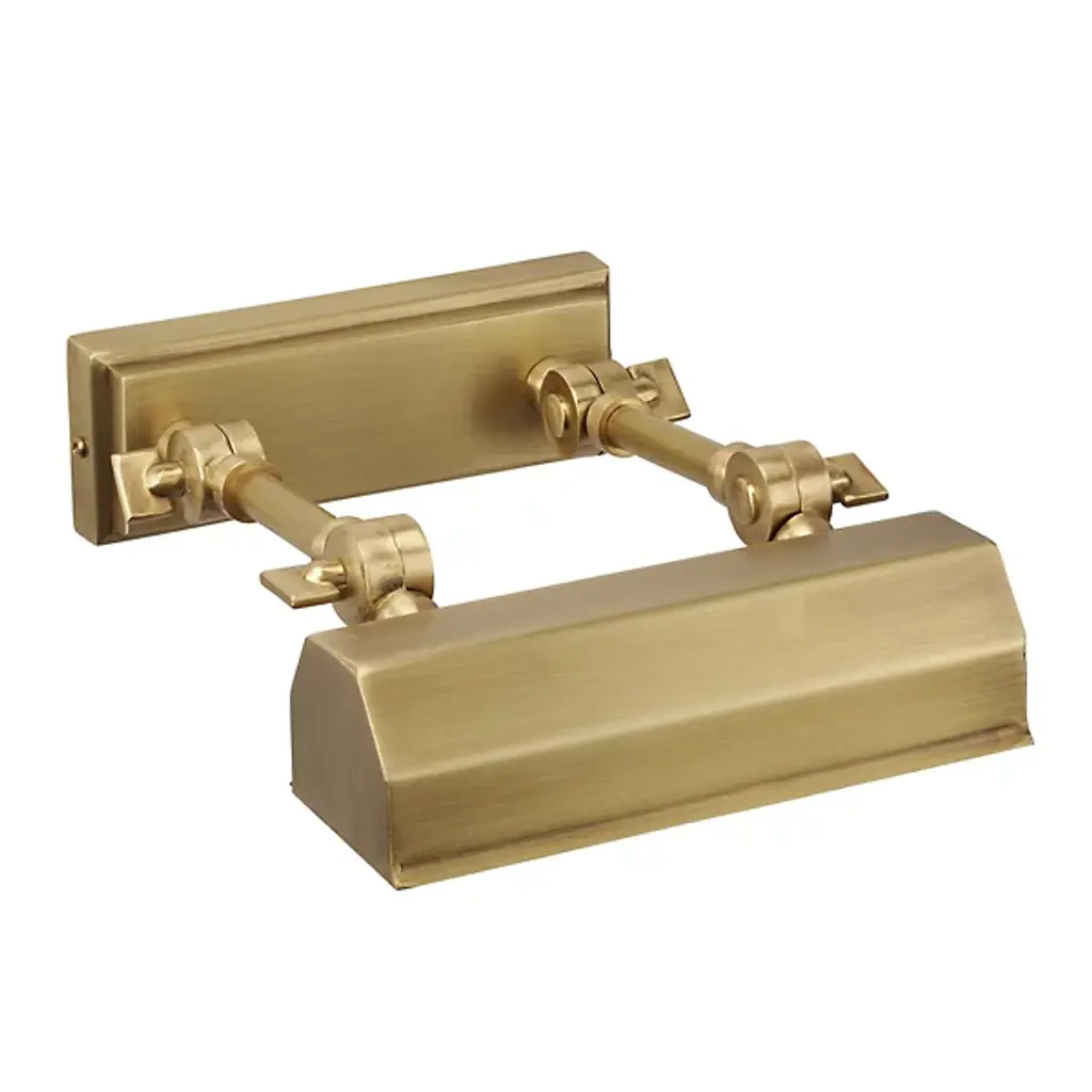 Put a spotlight on talent with the warm metal surfaces of the Chawton Small Picture Light from Lucas McKearn. A vintage-styled offering that extends from a stepped rectangular wall mount, it uses double-jointed arms in parallel to secure an angular, hooded shade around potent lamping, focusing a mix of direct downlight and warmth out through its base. The fixture blends class and flexibility, able to be set for a focused wall wash to highlight the art mounted below or focused up and out to bathe its surroundings in indirect light.