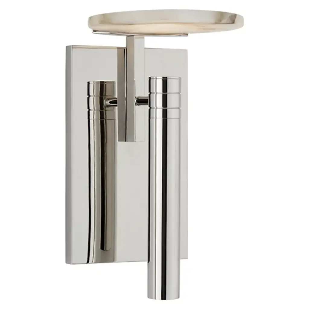Put a spotlight on talent with the warm metal surfaces of the Chawton Small Picture Light from Lucas McKearn. A vintage-styled offering that extends from a stepped rectangular wall mount, it uses double-jointed arms in parallel to secure an angular, hooded shade around potent lamping, focusing a mix of direct downlight and warmth out through its base. The fixture blends class and flexibility, able to be set for a focused wall wash to highlight the art mounted below or focused up and out to bathe its surroundings in indirect light.