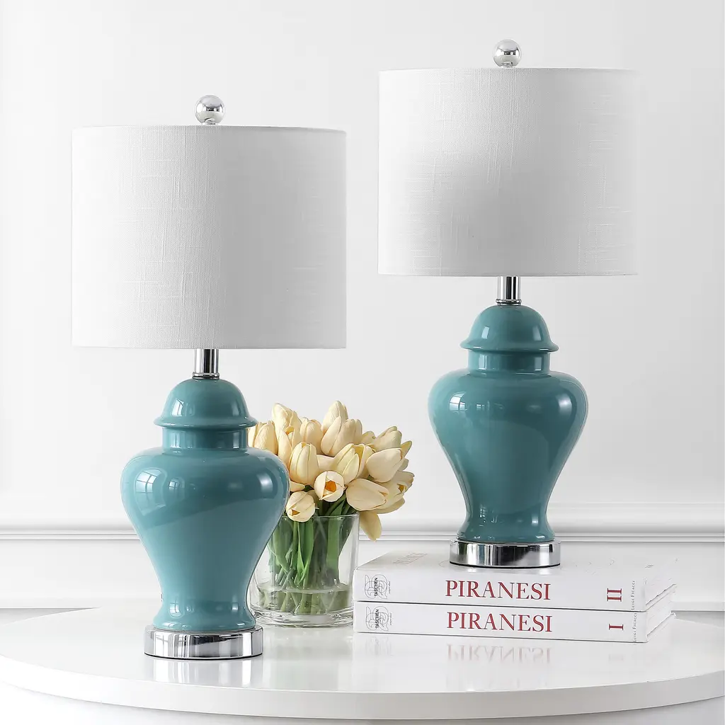 Prized for its beautiful warm tones of beige and hand-braided by skilled artisans, the cylinder bases of this pair of table lamps are completely wrapped in dried sea grass. Often used in baskets, sea grass makes a casual statement while adding texture to your surfaces. Finished in a matching finial and natural linen gray shade, it's an instant coastal classic.Features:Dimensions:About us:You see a lamp.We see a decorative work of art.A perfectly curved shade casts a dramatic shadow on a floor. A silk cord you never want to hide. Compatible with LED lightbulbs: as easy on the environment as they are on the eyes. The JONATHAN Y Lighting collection considers every detail from impeccably sourced materials to designer styling. And our prices are so attractive, we've transformed a functional necessity into a fashion accessory.JONATHAN Y Lighting - a fashion revolution in home decor.
