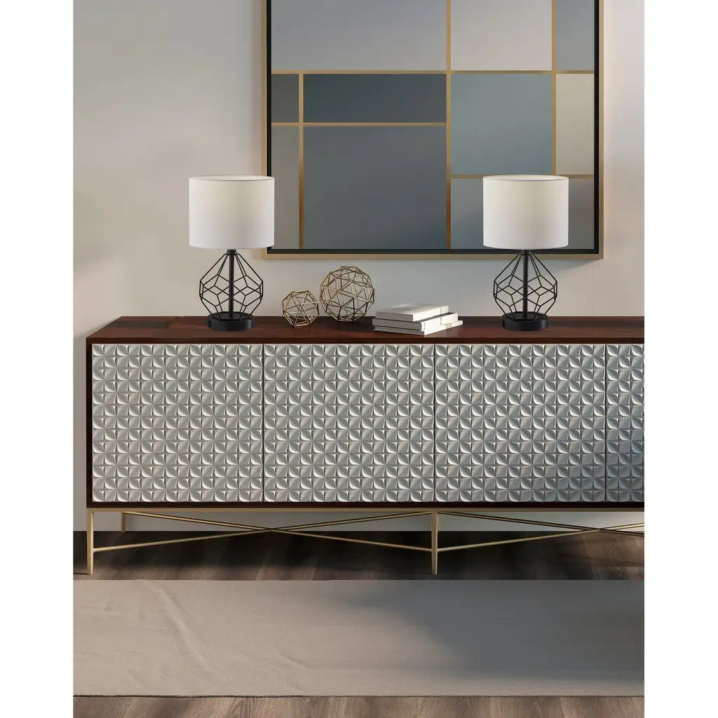 Discover the SL1183-01 Chiara 2 Piece Bonus Pack, where style and convenience unite in a pair of striking table lamps. With black metal cage-style bases that exude contemporary flair, these lamps make a design statement that can't be ignored. The unique feature of an AC outlet located on the base adds a touch of practicality, allowing you to charge your devices with ease. Topped with crisp white fabric shades, these lamps emit a soft, inviting glow that enhances your living space. An on/off rotary socket switch ensures effortless control over your lighting. Standing at a height of 16 inches, these compact lamps are perfect for smaller spaces. Elevate your decor with the Chiara Bonus Pack, where you get two matching lamps in one package. Dynamic Duo: The Chiara 2 Piece Bonus Pack includes two matching lamps that bring both style and function to your home. Contemporary Elegance: The black metal cage-style bases offer a modern design element that stands out. Convenient Charging: An AC outlet located on the base allows you to charge your devices without hassle. Soft Illumination: The white fabric shades diffuse a gentle light, creating a cozy ambiance in any room. Effortless Operation: Featuring on/off rotary socket switches, these lamps provide convenient control over your lighting.