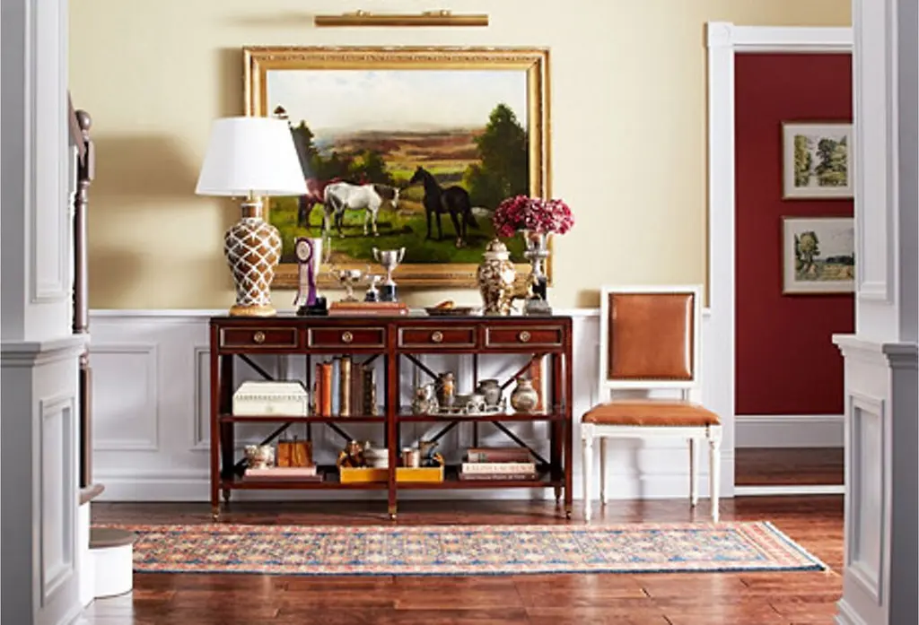 This vibrantly painted “chicken feather” design was inspired by Peruvian pottery and enhances the elegant shape of this ceramic lamp. Shade is not included, but we recommend an ivory empire shade like the one pictured here for a clean and classic look.