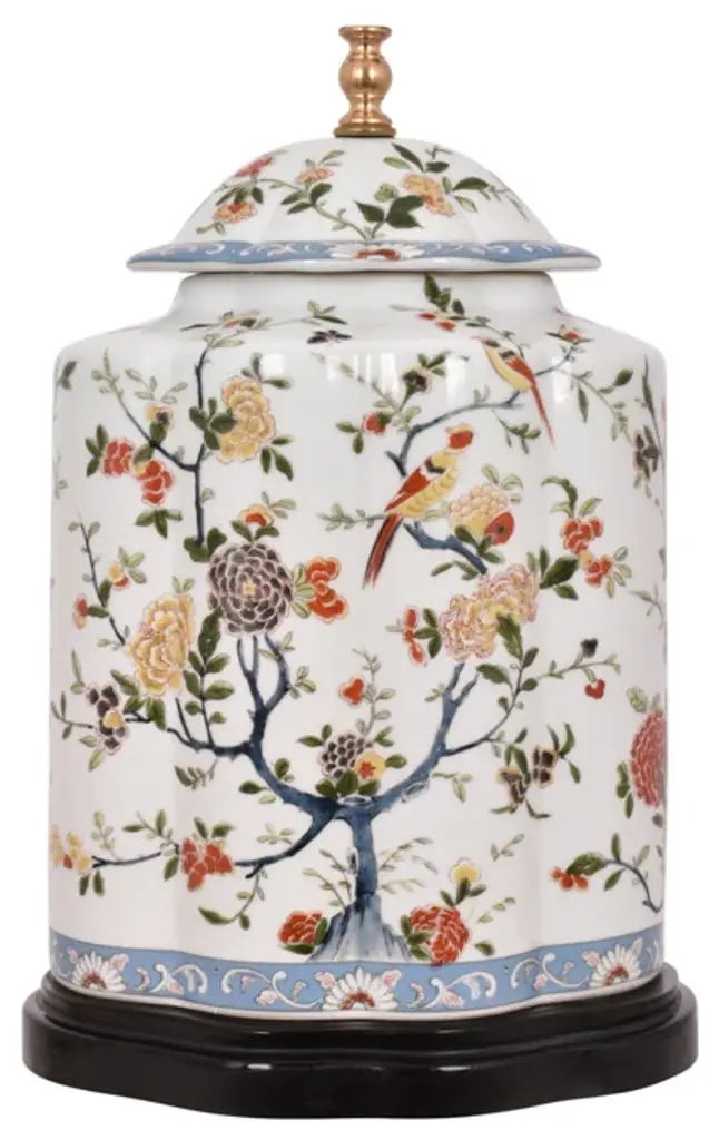Chinese Porcelain Scallop Ginger Jar Table Lamp, Bird Floral Motif, 27"