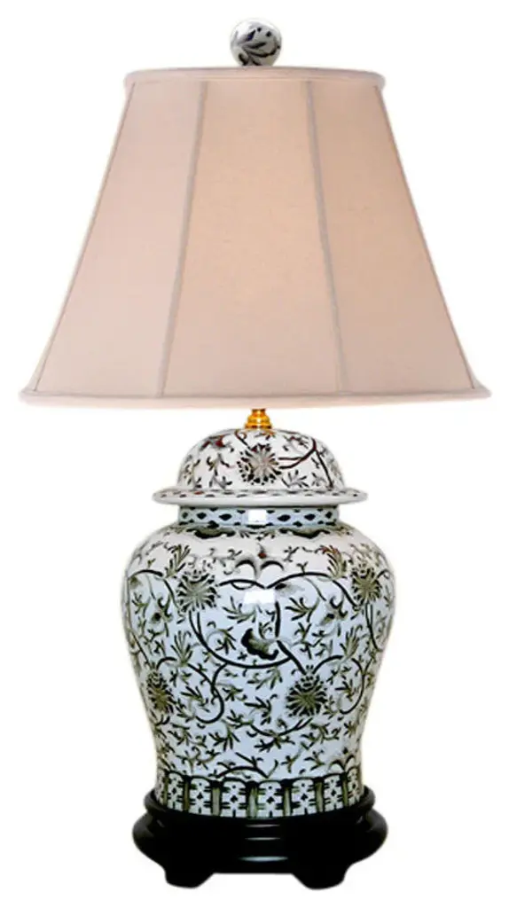 Please note : As most of our porcelain pieces are hand made and hand painted they may be slightly different from the photo in both shape and the way it is even colored! We do our best to find the one that is most common but sometimes they will be slightly different (around 10% in size and design). we do not consider these reasons to be defects. We will always try to find the best matching pair if you purchase two and notify you of any discrepancies if we catch them. Chinese Porcelain Scallop Ginger Jar Table Lamp Bird Floral Motif 29" Country of Origin: China Dimensions (in inches): Height: 29" Length: 18" With shade (150 max wattage) Number of Bulbs: 1 UL LISTED: YES Bulbs Not Included Comes with Shade and Finial