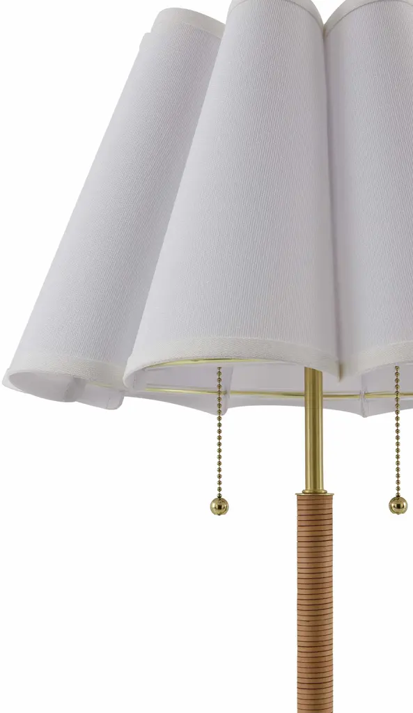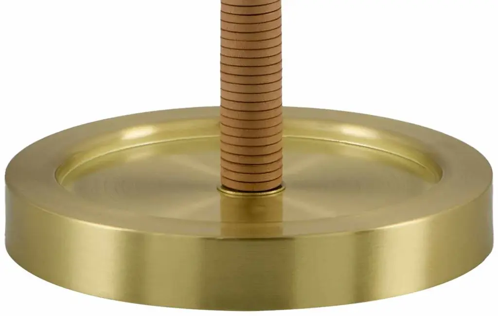 Collection: Chiomonte Colors: Camel, Metallic - Brass, Cream, White, Translucent Material: Body: Leather, Iron / Base: Iron / Shade (Outside): Linen Styles: Traditional Made In: China Lighting Type: Accent Table Lighting Base: Iron Base Color: Metallic - Brass Shade Material: Linen Shade Color: White, Cream Cord Length: 6' Switch Type: Twin Pull Number of Bulbs: 2 Socket Type: E-26 Bulb Wattage: 60W