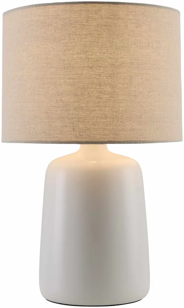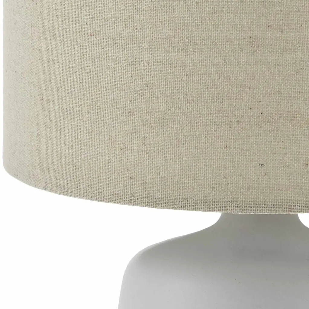 Collection: Chiquimula Colors: White, Beige, Translucent Material: Body: Ceramic,Shade (Outside): Linen,Shade (Inside): Polyester Styles: Contemporary Made In: China Lighting Type: Accent Table Lighting Shade Material: LinenPolyester Shade Color: WhiteBeige Cord Length: 6' Switch Type: Rocker Number of Bulbs: 1 Socket Type: E-26 Bulb Wattage: 40W