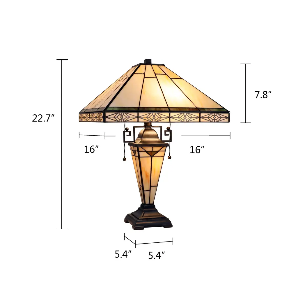 BELLE, Tiffany-style Mission is handcrafted with pure stained glass. This table lamp fixture features a classic yet modern lighting concept with an unique stated design. Giving a soft and warm feel to your office or home