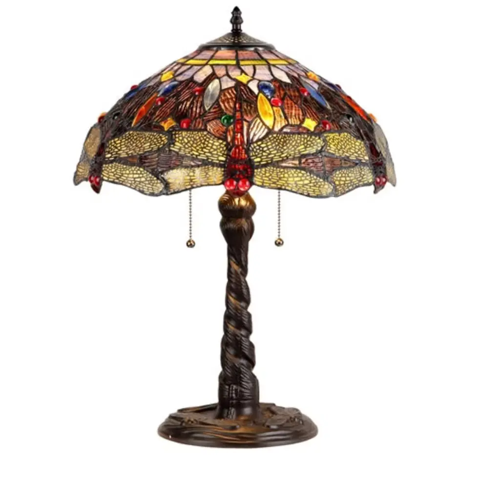 EMPRESS, a 3-light Dragonfly style doublie lit table lamp, will provide the design focal point for your home. Expand the effect by adding one or more of the other lamps in this design style. Hand crafted from over 340 individually hand cut pieces of art glass, 69 glass beads and 27 glass crystals that will add color and beauty to any room. Each glass piece individually positioned to create the perfect look and crystal gems to highlight the perfection. �Exquisite touches create warmth and serenity. �Expertly craft with top quality materials, and made using the same style developed by Louis Comfort Tiffany in the early 1900''s, with each piece lined in a fine copper foil and soldered together at high heat, to form each unique shade. This fixture is compatible with flourescent, incandescent, and LED bulbs. UL Listed, Dry listed and recommended for an indoor setting only.