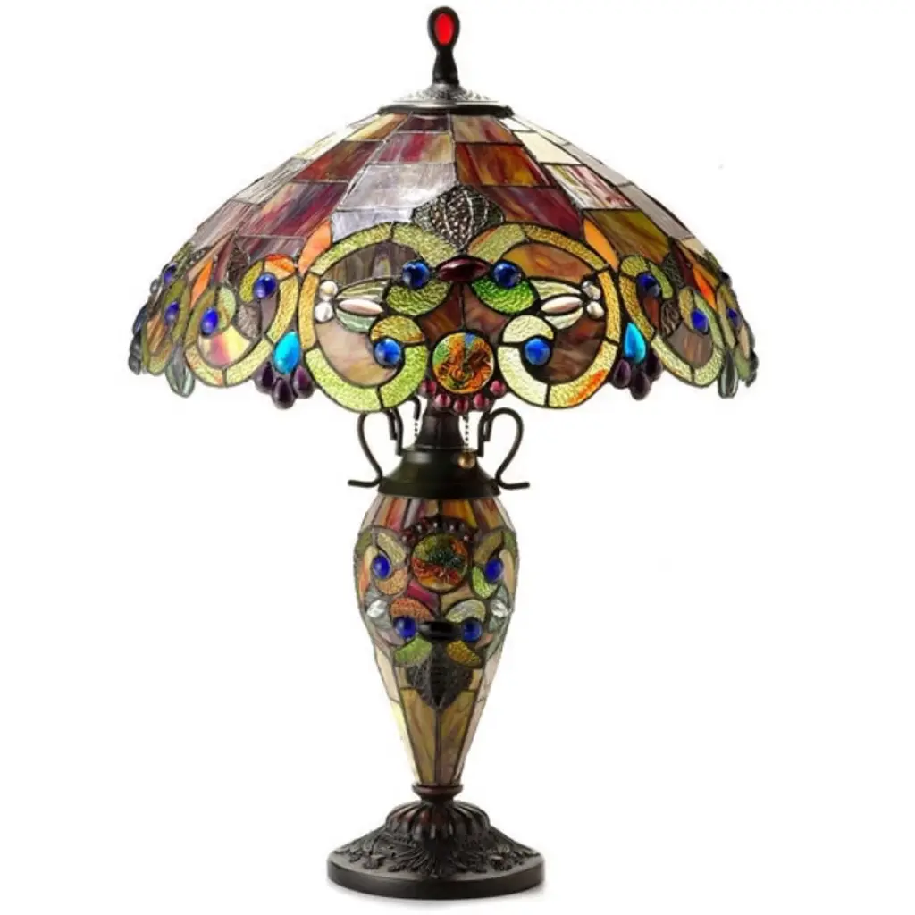 Chloe Lighting Demetra Aurora Tiffany-style 3 Light Victorian Double Lit Table Lamp 18" Shade