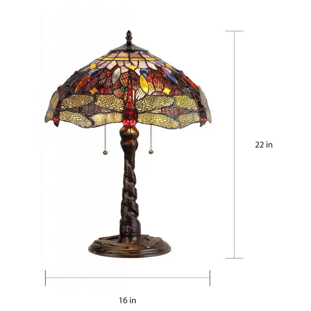 Chloe Lighting Dragan Tiffany-style 2 Light Dragonfly Table Lamp 16" Shade
