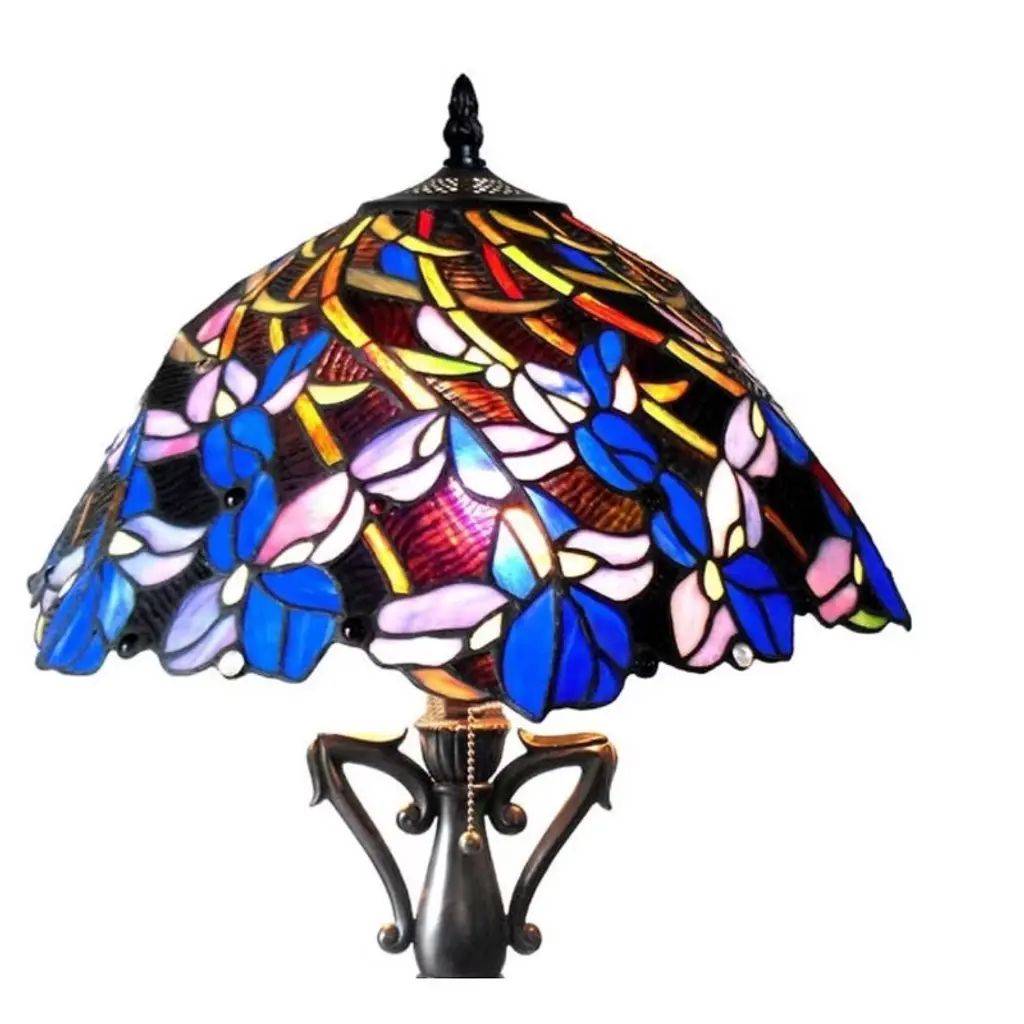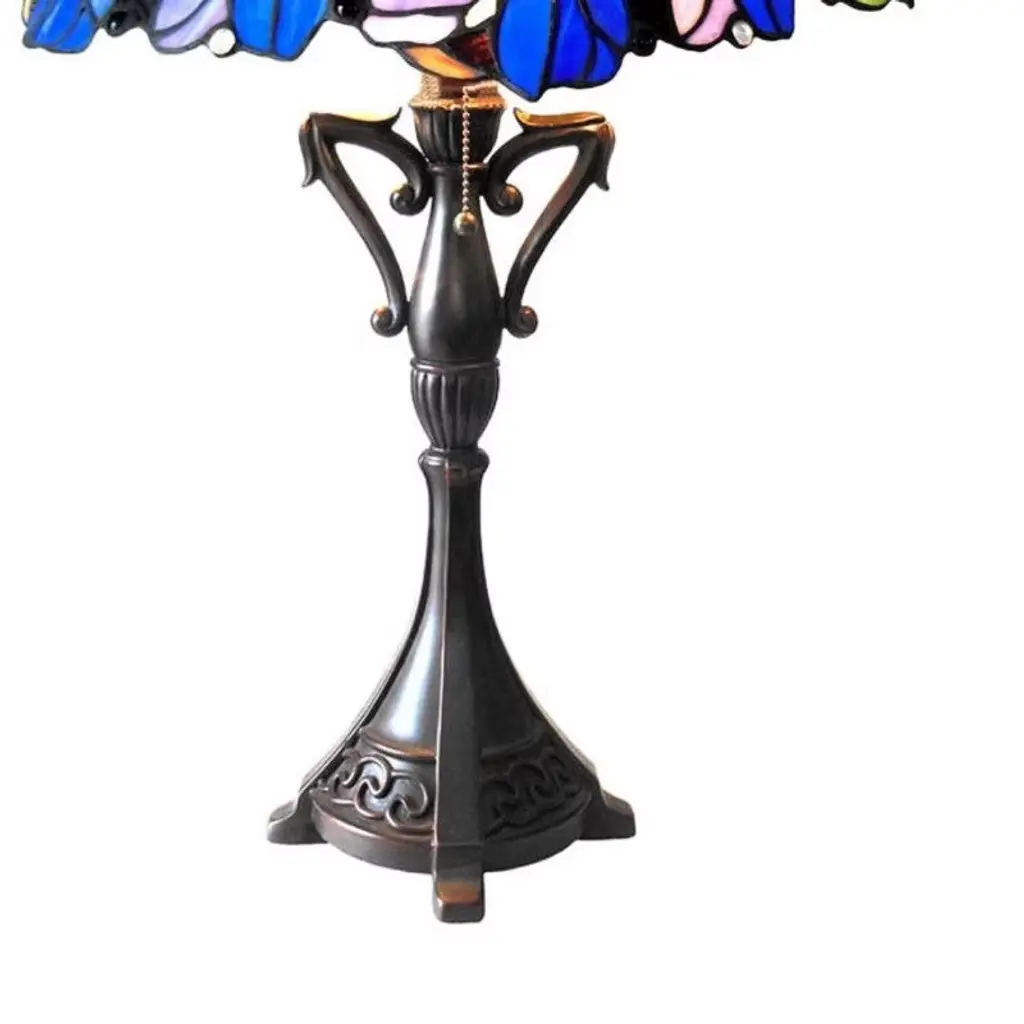 This Tiffany-style 2 light table lamp has a Iris design with bronze finish will be a great add to your home as well as beauty. Hand crafted from individually hand cut of 534 pieces copper-foiled stained glass and 36 beads that will also add color and beauty to any space