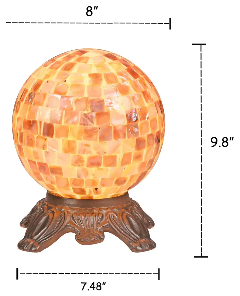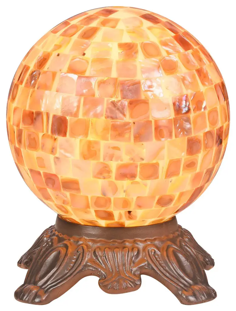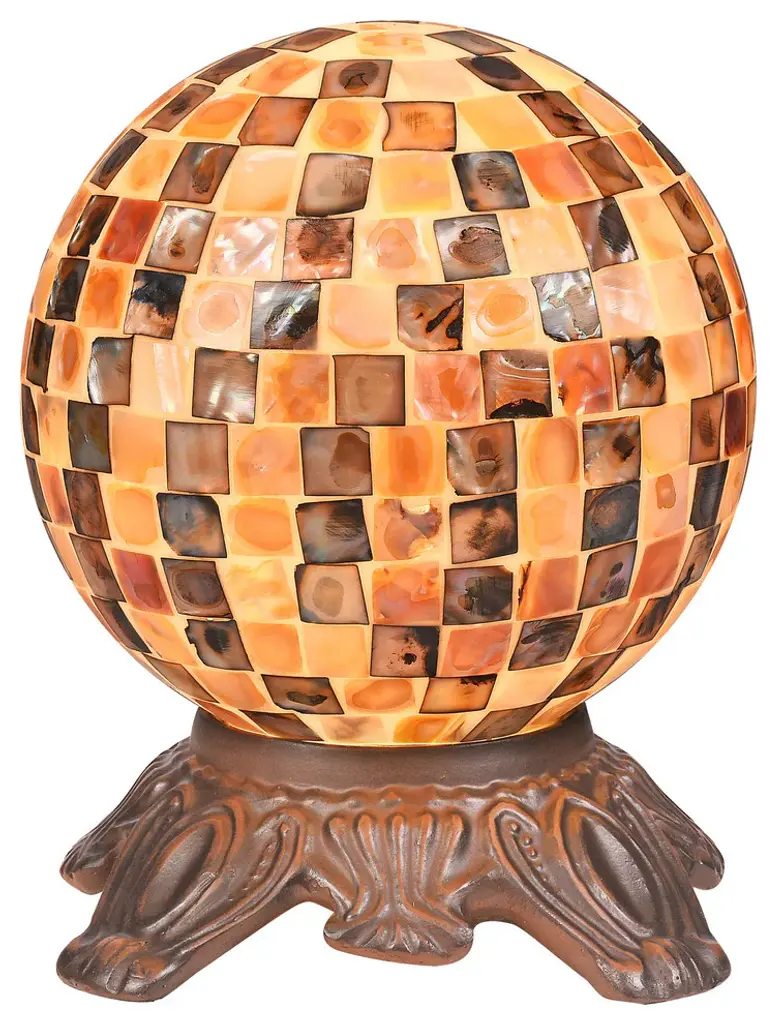 SHELLEY, a Mosaic style 1 light table lamp features beautiful seashells and ambient lighting. This piece is handcrafted from over 320 hand cut seashells, and has a gorgeous dark bronze finish, with shells that take on a light orange to a light peach color. (1) 60 Watt E26 Type A Bulb (not included)Plug-in324 SeashellsAmbientIndoor Setting