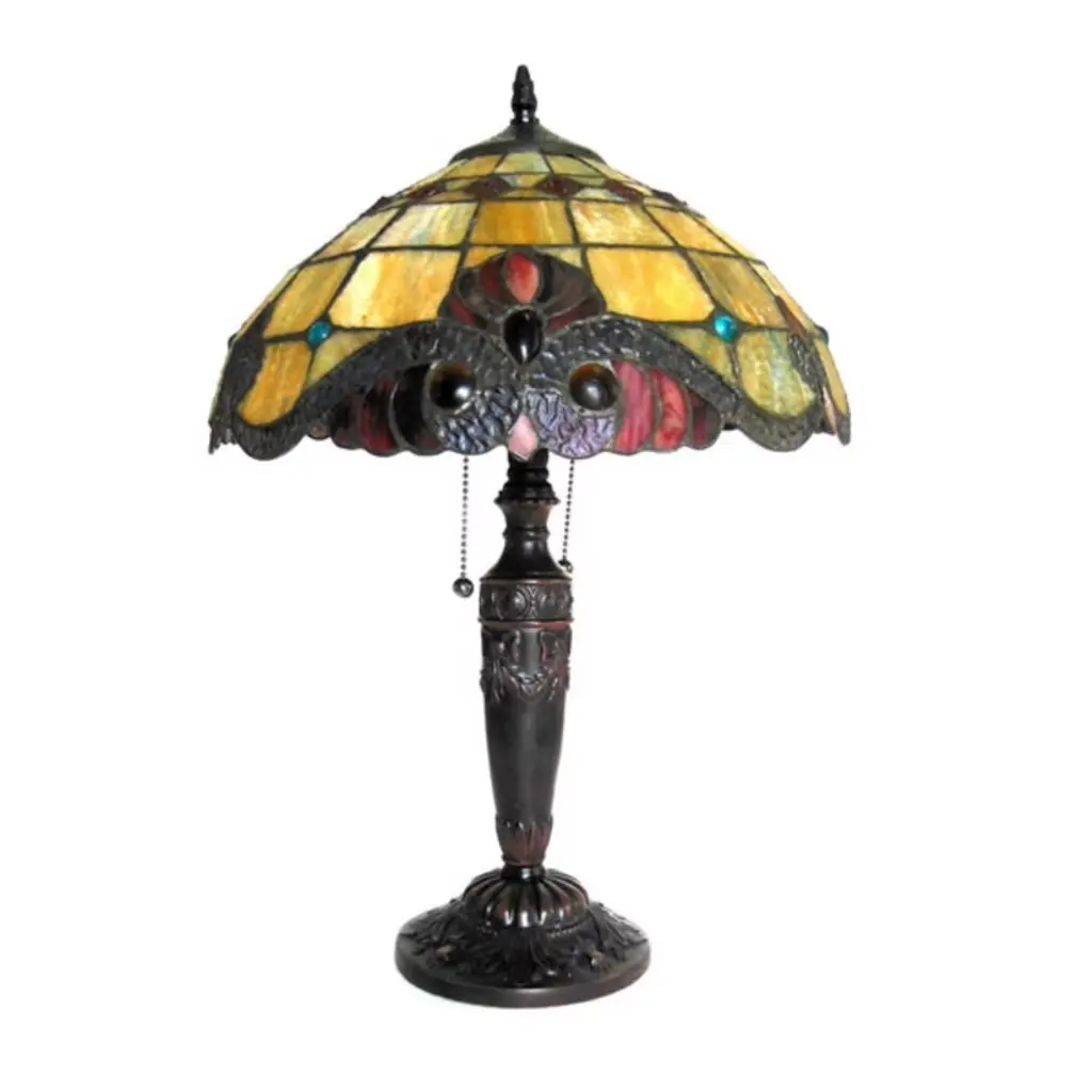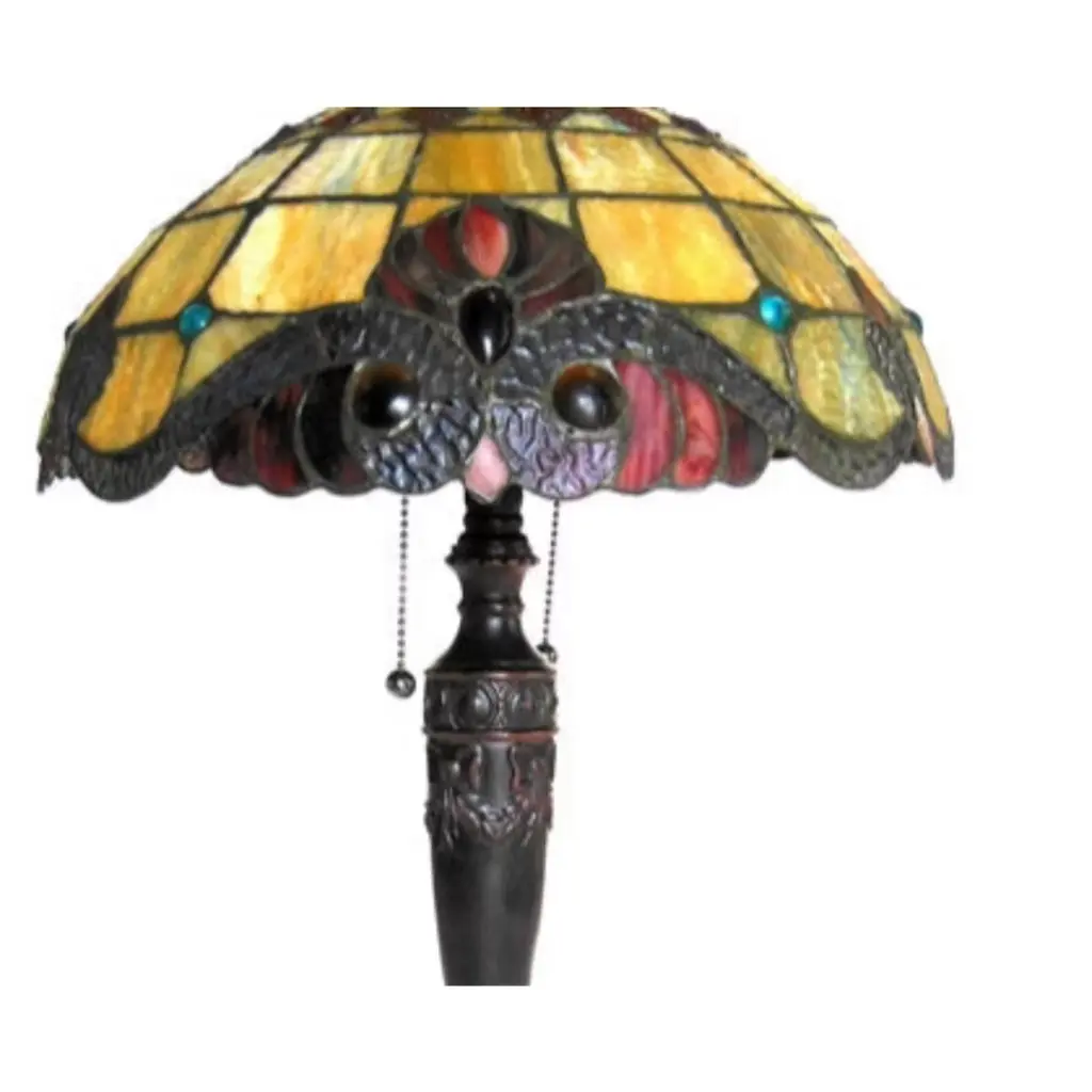 The Chloe Lighting Shelly table lamp is a beautifully handcrafted Victorian‑inspired piece, featuring a 14.5″ round stained‑glass shade artfully arranged in soft pastel hues. Supported by a classic antique bronze resin base, this lamp brings elegant charm to any room. With two pull‑chain switches, it’s perfect for bedside tables, reading nooks, or accent corners. When lit, the artisan‑cut glass illuminates your space with a warm, inviting glow—ideal for enhancing vintage or eclectic decor with timeless artistry. Key Features: Adds artistic elegance: Handcrafted stained-glass shade turns on to reveal a warm kaleidoscope of pastels. Vintage meets functionality: Dual pull‑chains allow flexible lighting choices for ambiance or reading. Versatile décor fit: Antique bronze base and pastel glass blend beautifully with Victorian, cottage, or eclectic styles. Craftsmanship you can see: Each lamp is one‑of‑a‑kind—glass colors and patterns vary slightly, ensuring a truly bespoke piece. Ready to use: No assembly required—easy to place in any room for immediate impact.